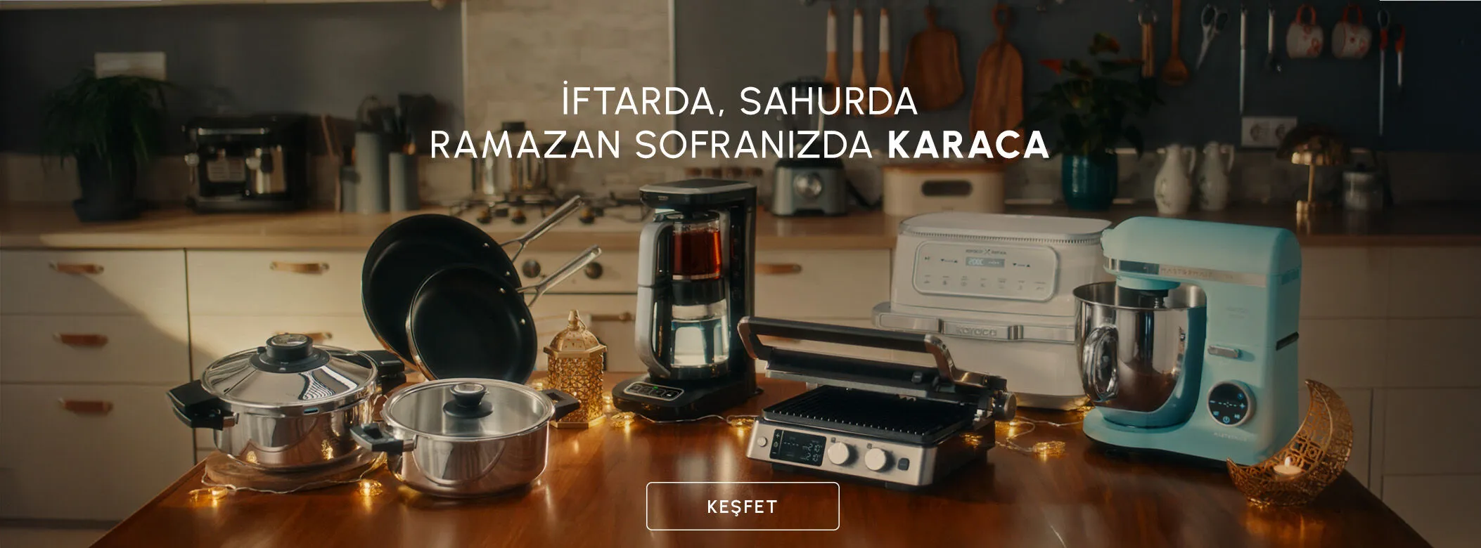 Evde kullanılan mutfak ve sofra ürünleri, küçük ev aletleri ve ev tekstili seçenekleri Karaca’da geniş bir çeşitlilikle sunulur. Günlük kullanımda ihtiyaç duyulan ürünlerin tamamı, kolay kullanım, dayanıklılık ve pratiklik dikkate alınarak hazırlanmaktadır. Yemek hazırlama, pişirme, sunum ve saklama gibi mutfakta yer alan tüm aşamalar için farklı ürün gruplarına Karaca ile ulaşmak mümkündür. Karaca’da yemek takımı, tencere seti, kahve makinesi, saklama çözümleri ve birçok mutfak ürünü düzenli olarak güncellenen koleksiyonlar halinde sizlere sunulmaktadır.