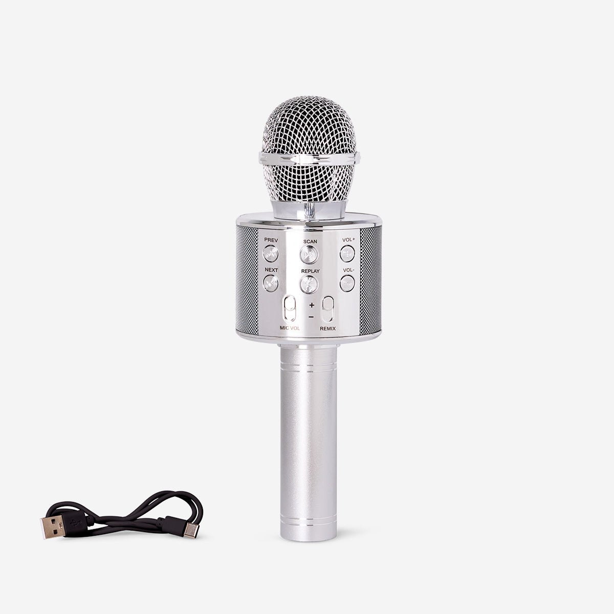 Gümüş Karaoke Mikrofonu, parlak görünümü ve eğlenceli tasarımıyla müzik dolu anları daha neşeli hâle getirir. Parlak gümüş yüzeyi, her ışıkta ışıltılı bir atmosfer yaratırken güçlü ses performansı sayesinde evde, partilerde ya da arkadaş buluşmalarında profesyonel bir karaoke deneyimi sunar. Kablosuz bağlantı özelliğiyle telefon veya tabletle kolayca eşleşir ve favori şarkılarınızı sevimli bir sahne enerjisiyle söylemenize olanak tanır. Hafif yapısı sayesinde taşınması da son derece pratiktir.