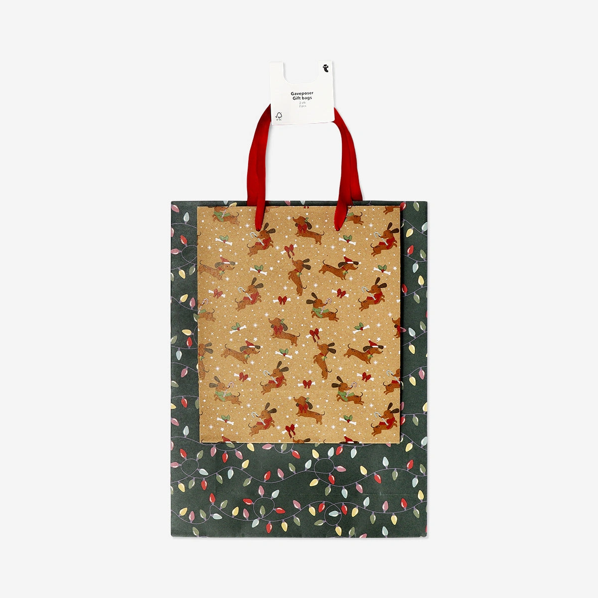 Yılbaşı Temalı 2’li Hediye Çantası, sevimli sosis köpekleri ve parlak çelenk detaylarıyla Noel hediyelerinize eğlenceli bir karakter katar. Çok renkli bu set, biri parıldayan ışıklarla süslenmiş yeşil çanta, diğeri ise yılbaşı kıyafetleri giymiş neşeli dachshund köpekleriyle bezenmiş kraft desenli çanta olmak üzere iki farklı tasarım içerir. 9 x 33 x 25 cm boyutlarındaki büyük çanta, kitaplardan tatlı ikramlara kadar çeşitli hediyeler için ideal genişliğe sahiptir. Kağıttan üretilen ve kırmızı saplarla tamamlanan bu çantalar, hem dayanıklı hem de göz alıcıdır.