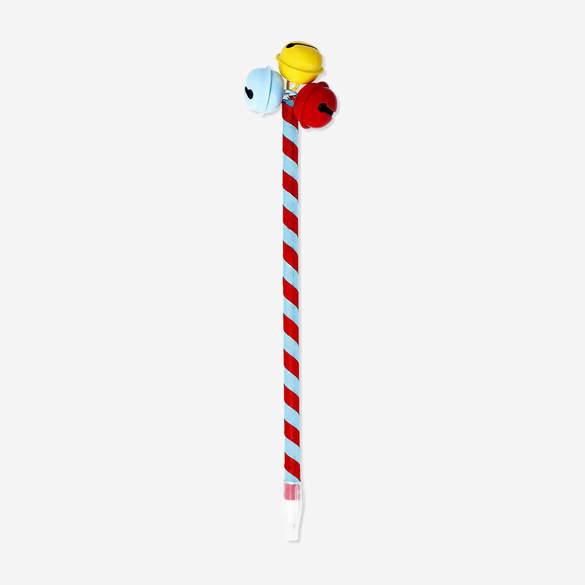 Notlarınıza neşe katın! Çanlı Tükenmez Kalem, renkli tasarımı ve yılbaşı temalı detaylarıyla yazı yazmayı eğlenceli hale getirir. Metal malzemeden üretilen kalem, 3,8 x 20,8 cm ölçülerindedir ve kırmızı-mavi çizgili gövdesiyle dikkat çeker. Siyah mürekkebiyle akıcı bir yazım sunarken, üst kısmındaki üç minik çan her hareketinizde hoş bir tını ekler.