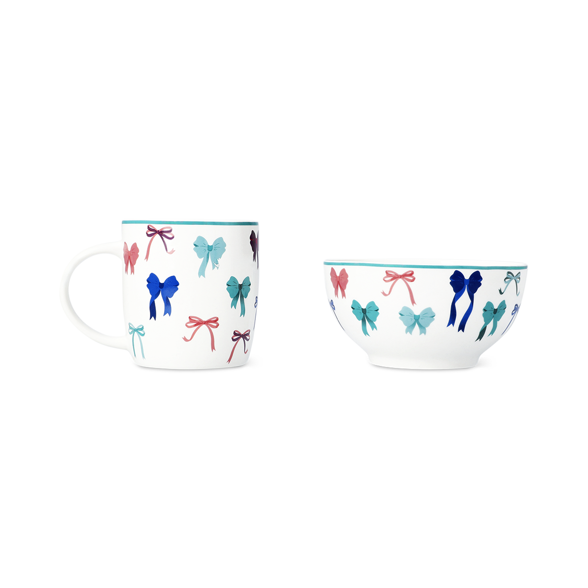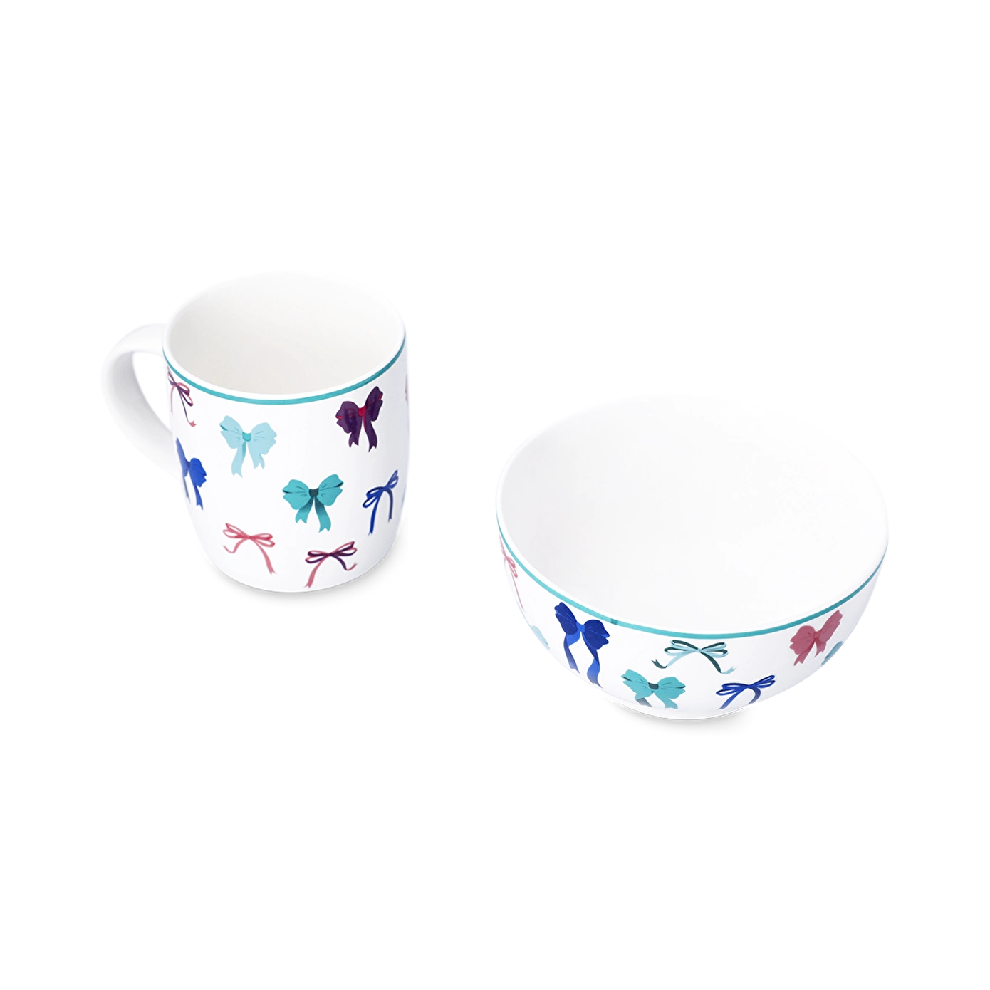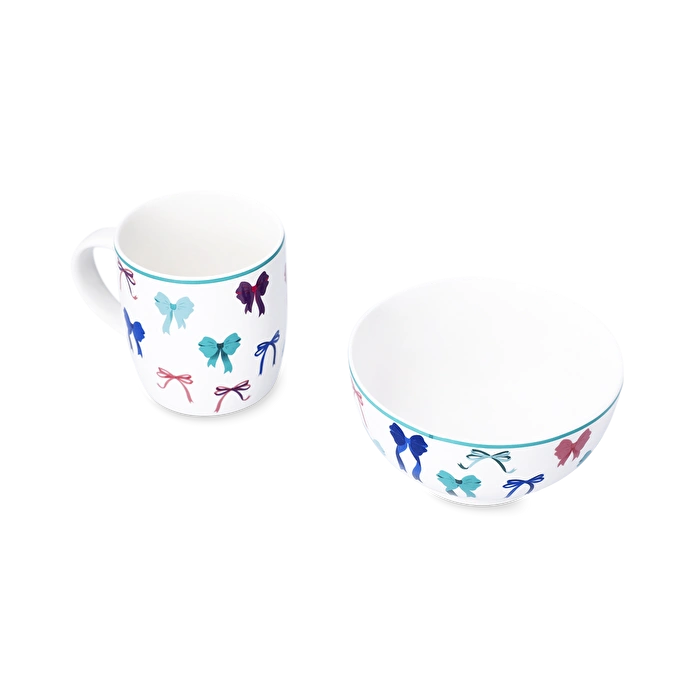 Fiyonk Desenli Beyaz Kupa Seti, kahvaltı sofralarınıza neşeli bir enerji ve zarif bir dokunuş katar. Renkli fiyonk desenleriyle süslenmiş bu iki parçalı set, bir kase ve 8,5 x 9 x 8,5 cm boyutlarındaki saplı bir kupadan oluşur. Seramikten üretilen parçalar, sade beyaz zemin üzerinde öne çıkan canlı motifleriyle hem modern hem de sıcak bir görünüm sunar. Kahve, çay, süt, mısır gevreği veya atıştırmalıklar için mükemmel olan bu set, günlük sabah rutinlerine şenlikli bir hava getirir.