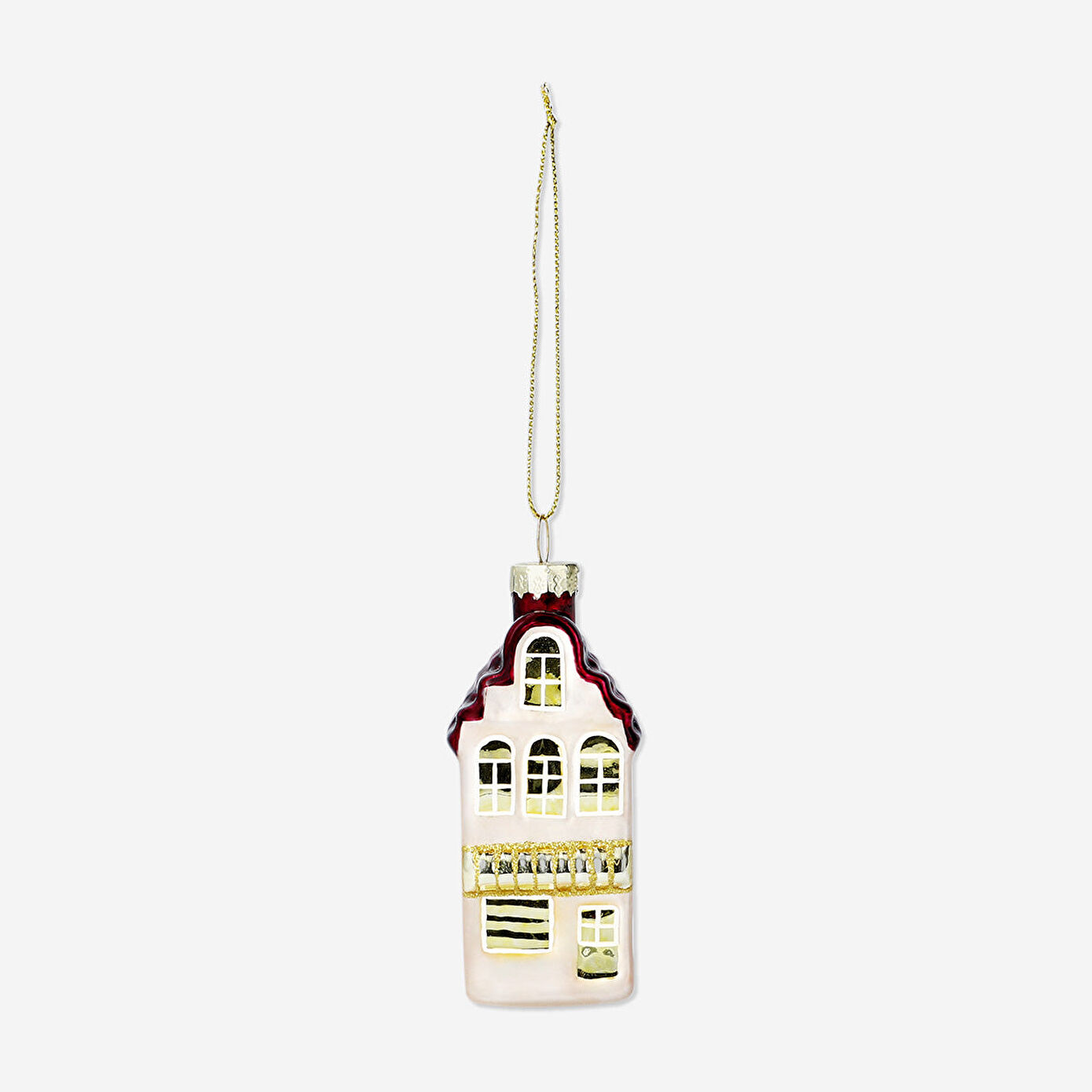 Kırmızı Ev Yılbaşı Ağacı Süsü, klasik Noel estetiğini yansıtan canlı ve nostaljik bir parçadır. 3,5 x 8,4 x 3,4 cm boyutlarındaki bu cam süs, parlak kırmızı rengiyle ışığı zarifçe yansıtırken, altın detaylarıyla sıcak bir ışıltı katar. Dalgalı çatı formu, kemerli pencereleri ve dükkan önünü andıran cephesiyle, geleneksel şehir evlerinden ilham alan zarif bir tasarıma sahiptir. Hafif yapısı sayesinde ağacınıza kolayca asılabilir ve her dalda şık bir vurgu yaratır.