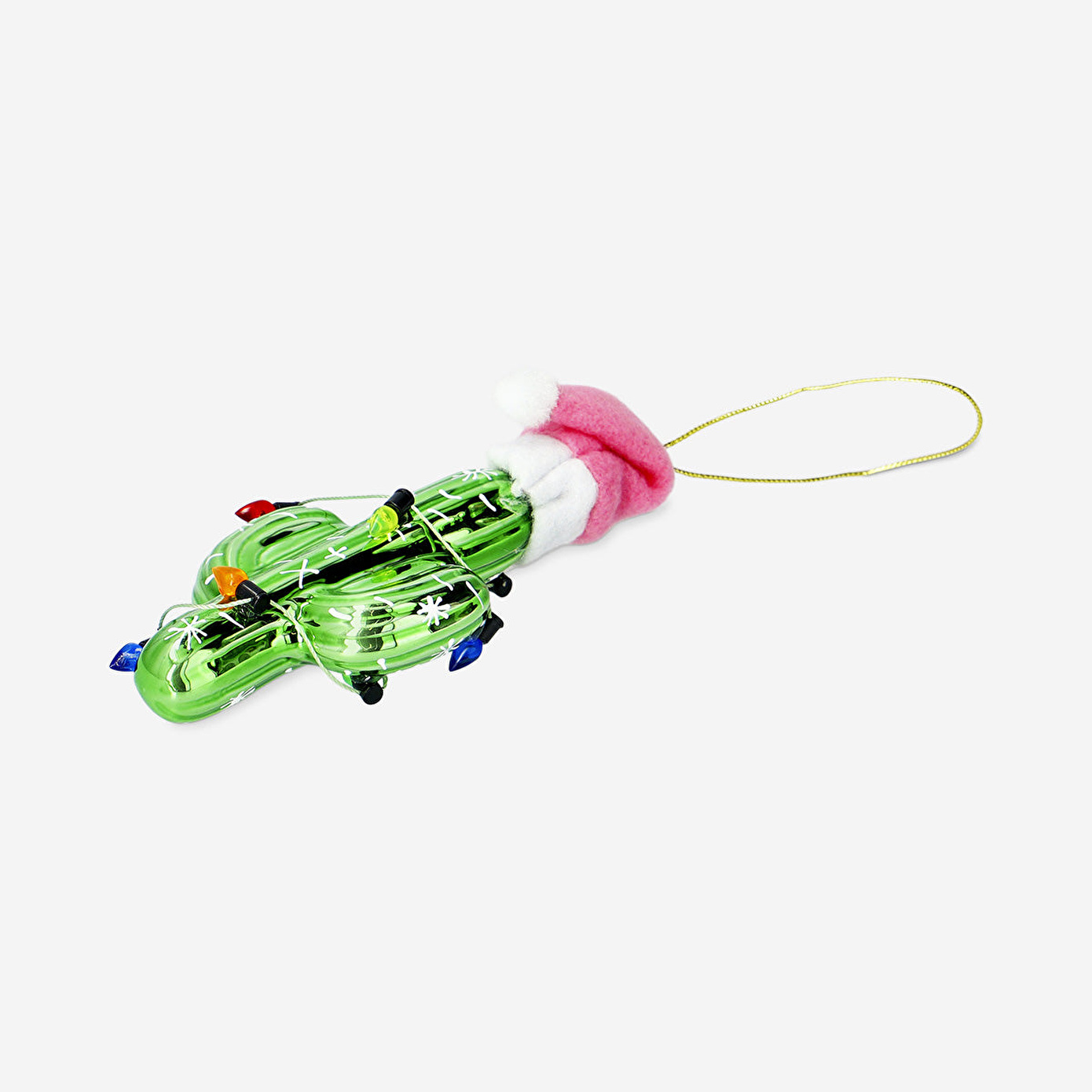 Şapkalı Kaktüs Yılbaşı Ağacı Süsü, Noel ruhuna esprili bir yaklaşım getirerek dekorasyonlarınıza canlı ve özgün bir hava katar. 1,7 x 9 x 4,8 cm boyutlarındaki bu cam süs, parlak yeşil rengi, üzerine sarılmış mini ışıkları ve kırmızı Noel Baba şapkasıyla dikkat çeker. Yüzeyindeki ince detaylar ışığı yansıtarak ağacınıza sıcak bir ışıltı ve hareketli bir görünüm kazandırır. Hafif tasarımı sayesinde dallara kolayca asılabilir ve klasik süslerle eğlenceli bir kontrast yaratır.