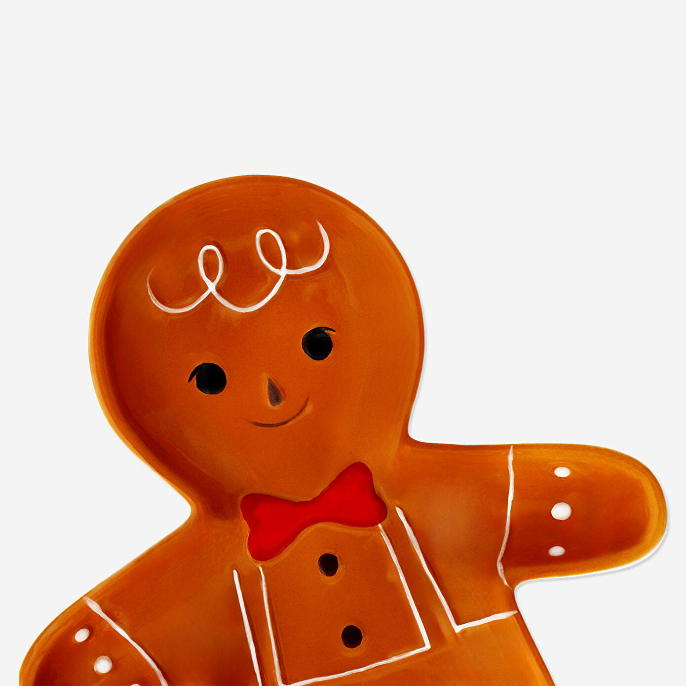 Kurabiye Adam Şeklinde Servis Tabağı, zencefilli kurabiye görünümüyle yılbaşı sofralarınıza sevimli ve eğlenceli bir hava katar. 26,3 x 2,5 x 20,9 cm boyutlarındaki bu kahverengi seramik tabak, bisküvi, şekerleme veya minik atıştırmalıkları sunmak için mükemmel bir tercihtir. Zarif detaylarla tasarlanan kurabiye figürü, sofralarınıza tatlı bir karakter kazandırır. Kış buluşmalarında veya yılbaşı kutlamalarında masanızın en dikkat çekici parçası olur.