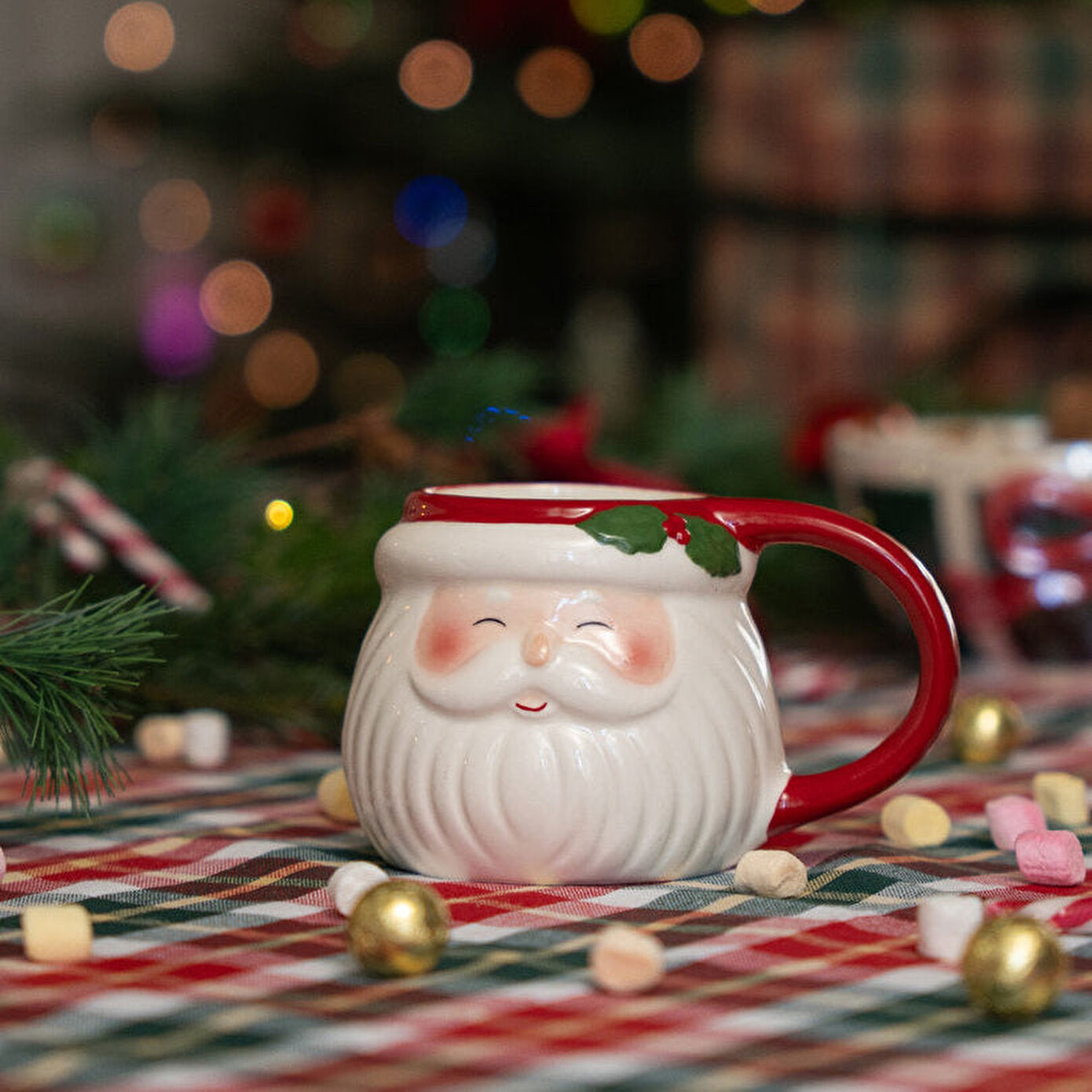 Noel Baba Şeklinde Kupa 400 ml, kırmızı sapı ve kenarıyla tamamlanan sevimli Noel Baba yüzü tasarımıyla içeceklerinize şenlikli bir sıcaklık katar. 10,4 x 8,7 x 14,5 cm boyutlarındaki bu kupa, 380 ml kapasitesiyle kahve, çay veya sıcak çikolata keyfi için mükemmeldir. Canlı renkleri ve detaylı işçiliğiyle Noel ruhunu her yuduma taşır. Eğlenceli görünümüyle hem günlük sabah ritüellerine hem de yılbaşı sofralarına neşe ve canlılık kazandırır.