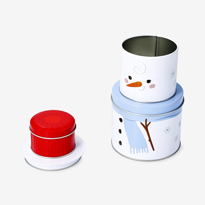 Kardanadam Şeklinde 3’lü Metal Kutu, üst üste dizildiğinde sevimli bir kardan adamı andıran tasarımıyla mutfağınıza eğlenceli ve şenlikli bir hava katar. Üç farklı boyda istiflenebilir teneke kutudan oluşan bu set, unlu mamuller, tatlılar veya mevsimlik ikramları saklamak için idealdir. En küçük kutu 7 x 4,7 x 7 cm boyutlarındadır ve her parça birbirine tam oturarak kompakt bir görünüm oluşturur. Renkli detaylarıyla yılbaşı dönemine neşe ve karakter kazandırır.