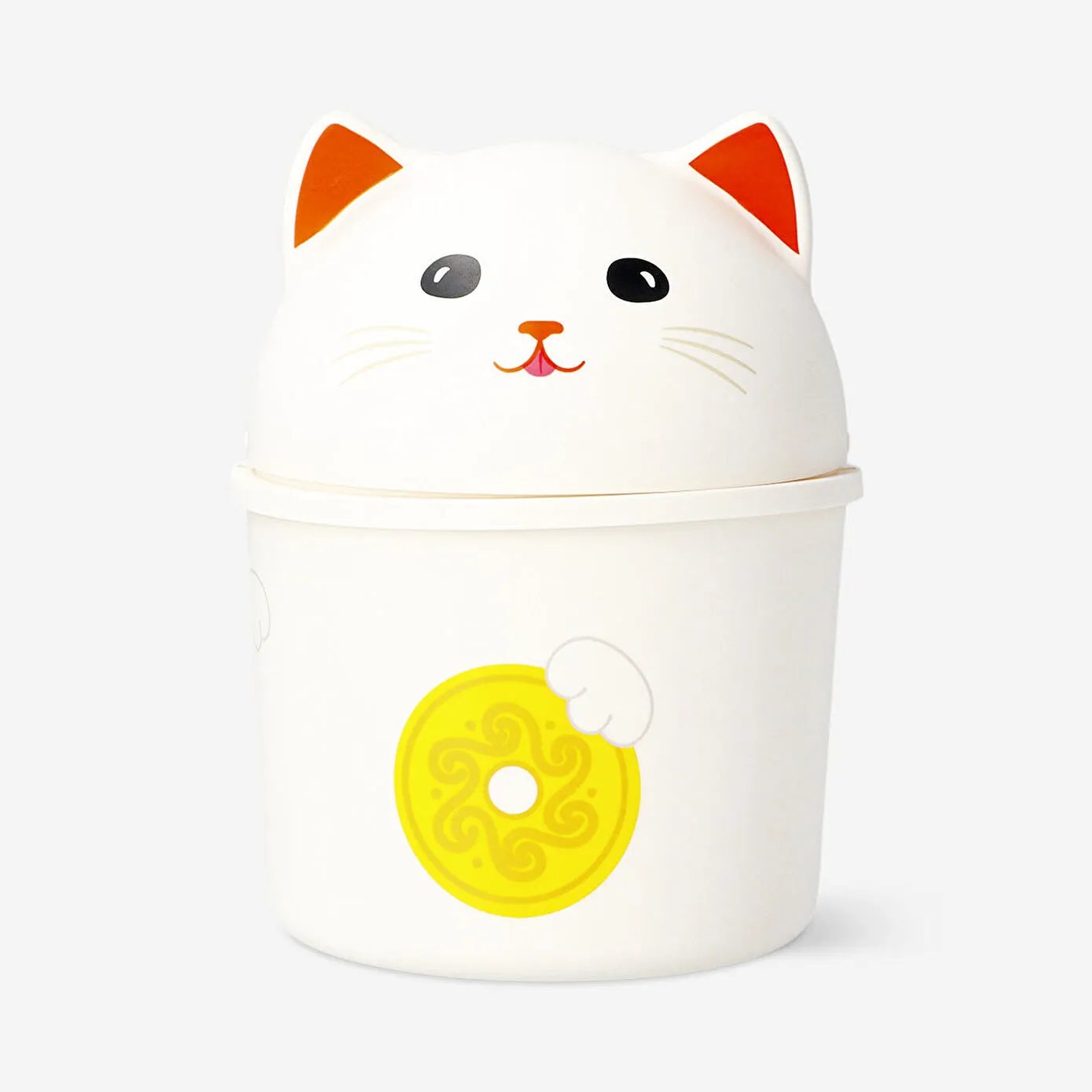 Dayanıklı plastik malzemeden üretilen Şans Kedisi Şeklinde Çöp Kutusu, kolay açılan kapağıyla pratik bir kullanım sunar. Renkli ve eğlenceli tasarımı, ofis masası, makyaj alanı veya çocuk odasında kullanmak için mükemmeldir. Estetik görünümüyle sıradan masaüstü aksesuarlarının ötesine geçerek ortamınıza hem düzen hem de neşe katar.