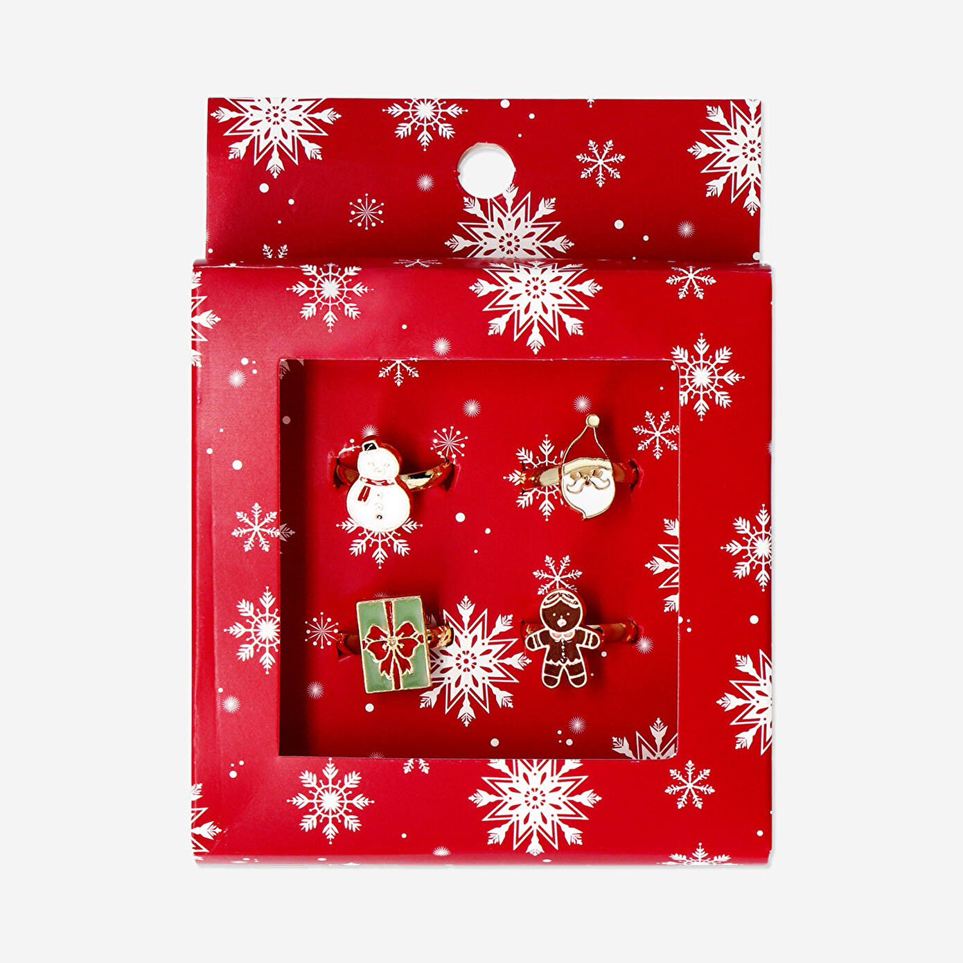 4'lü Noel Baba Temalı Yüzük seti, kar taneleriyle süslenmiş hediye kutusunda sunularak hediye etmeye hazır şekilde gelir. Bu sevimli set, yılbaşı döneminde arkadaşlarınıza, sevdiklerinize veya kendinize keyifli bir armağan olarak mükemmeldir. Parlak yüzeyleri ve eğlenceli temaları, her bakışta tatil neşesini yansıtır. Günlük stilinize sıcaklık ve mizah katarken, özel etkinliklerde de dikkat çekici bir detay sunar. Yılbaşı ruhunu parmak uçlarınızda taşımanın büyüleyici bir yoludur.