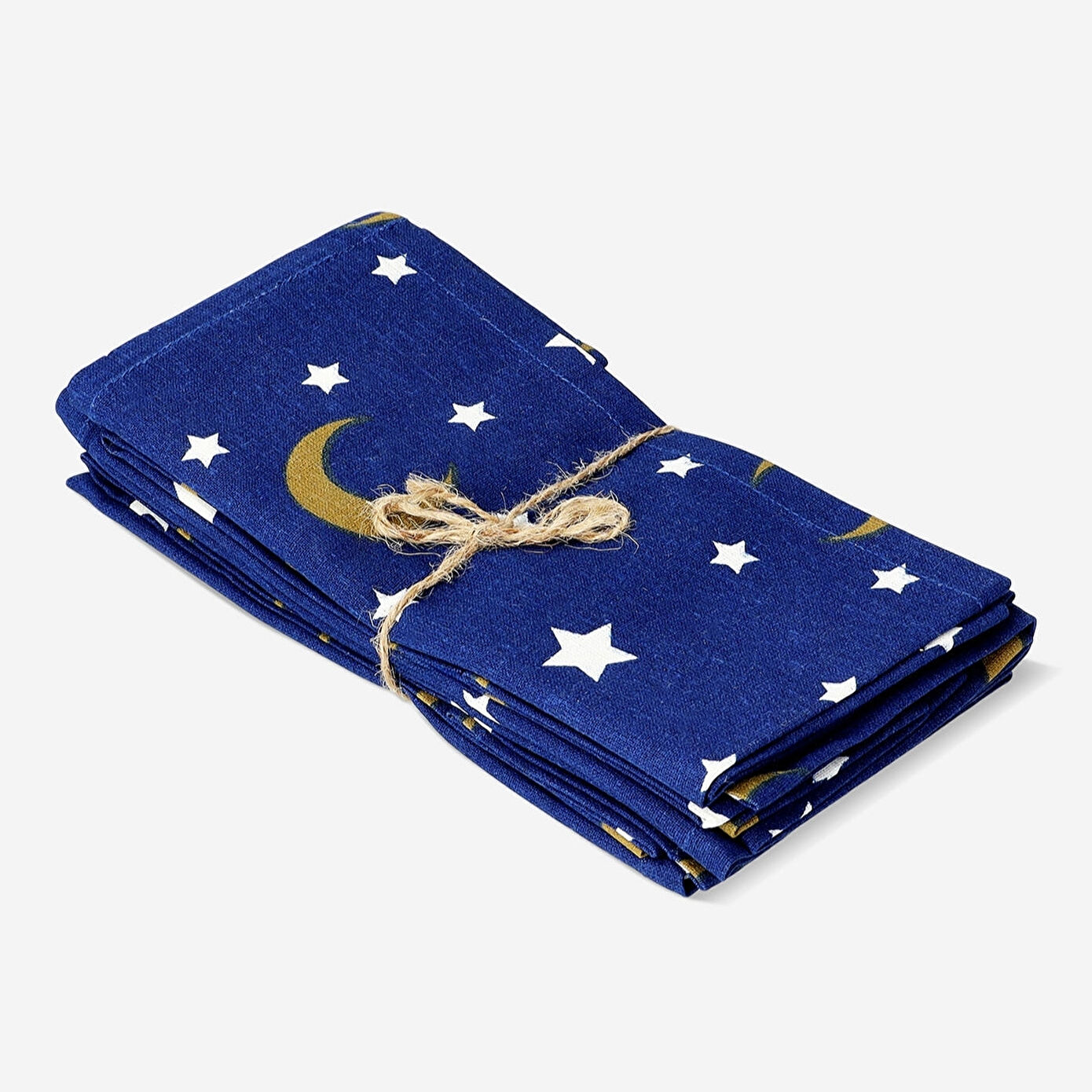 Özel günlerde ya da günlük kullanımda, bu peçeteler sofralarınızı zarif bir şekilde tamamlayarak misafirlerinize hoş bir izlenim bırakacaktır. Deseni, sofra düzeninize eğlenceli ve sofistike bir hava katarken, onları hem dekoratif hem de işlevsel bir aksesuar haline getirir. 4'lü Ay Yıldız Desenli Pamuklu Peçete 40 cm x 40 cm, her yemeği özel kılacak bir ayrıntı olarak sofralarınızda yerini alacaktır.
