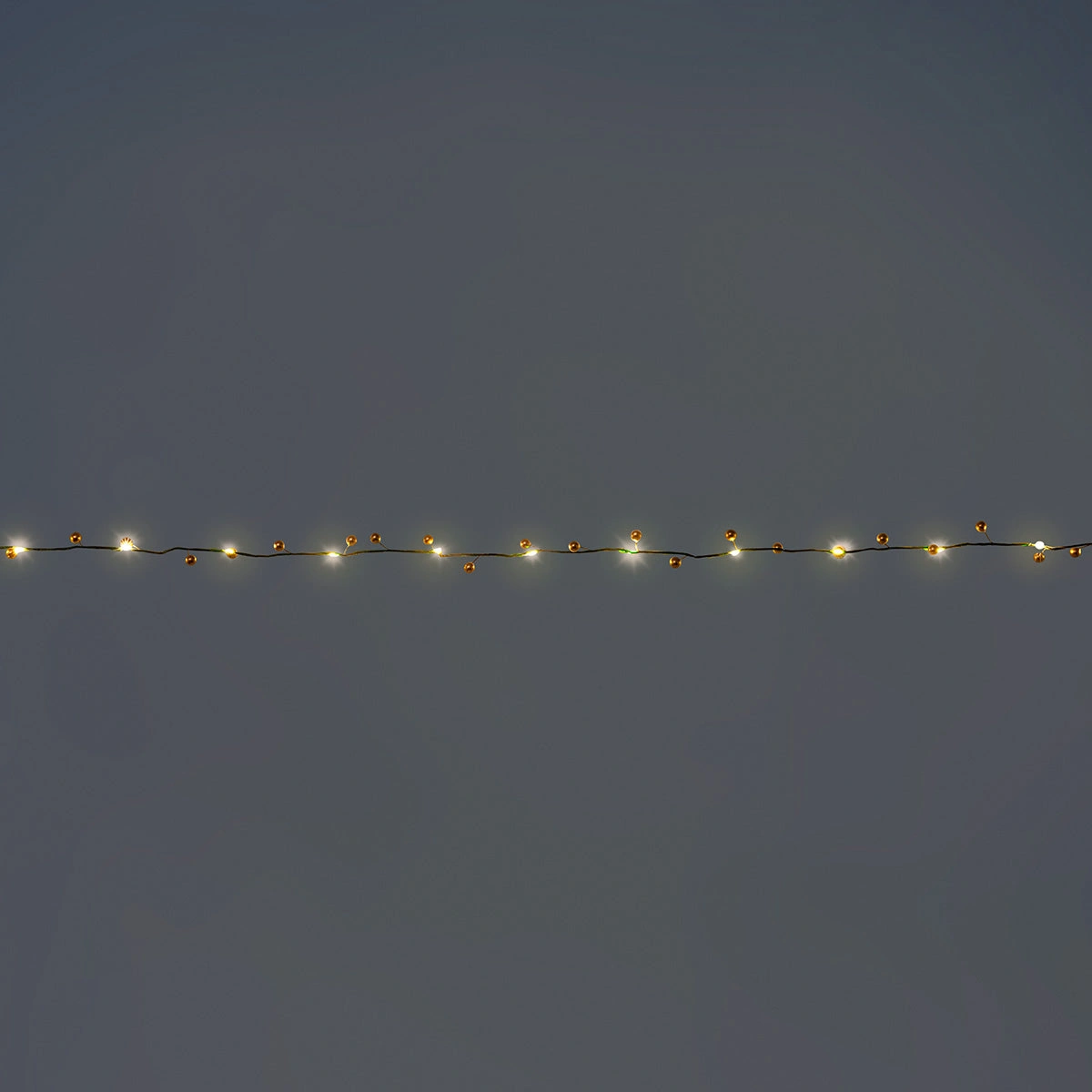 Altın Detaylı LED Işık Zinciri, 40 parlak altın vurguyla süslenmiş 20 LED ışığıyla her ortama zarif bir ışıltı katar. İnce bir tel üzerine aralıklı olarak yerleştirilen altın noktalar, ışık yanarken sıcak bir parıltı yaratır ve dekorunuza sofistike bir dokunuş ekler. Raflar, şömine rafları veya masa süsleri etrafında kullanılabilir ve yumuşak ışığıyla ortama huzurlu bir atmosfer kazandırır. 2 adet AA pil ile çalışan bu ürün (piller dahil değildir), priz gerektirmeden dilediğiniz yere kolayca yerleştirilebilir.