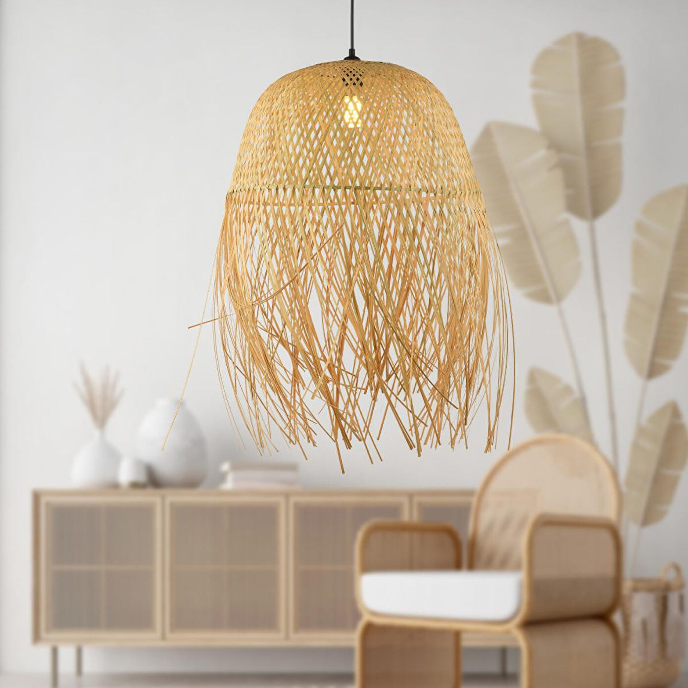Apliqa Adolf Tekli Rattan Modern Tasarım Hazeran Avize Oturma Odası Bambu Avize