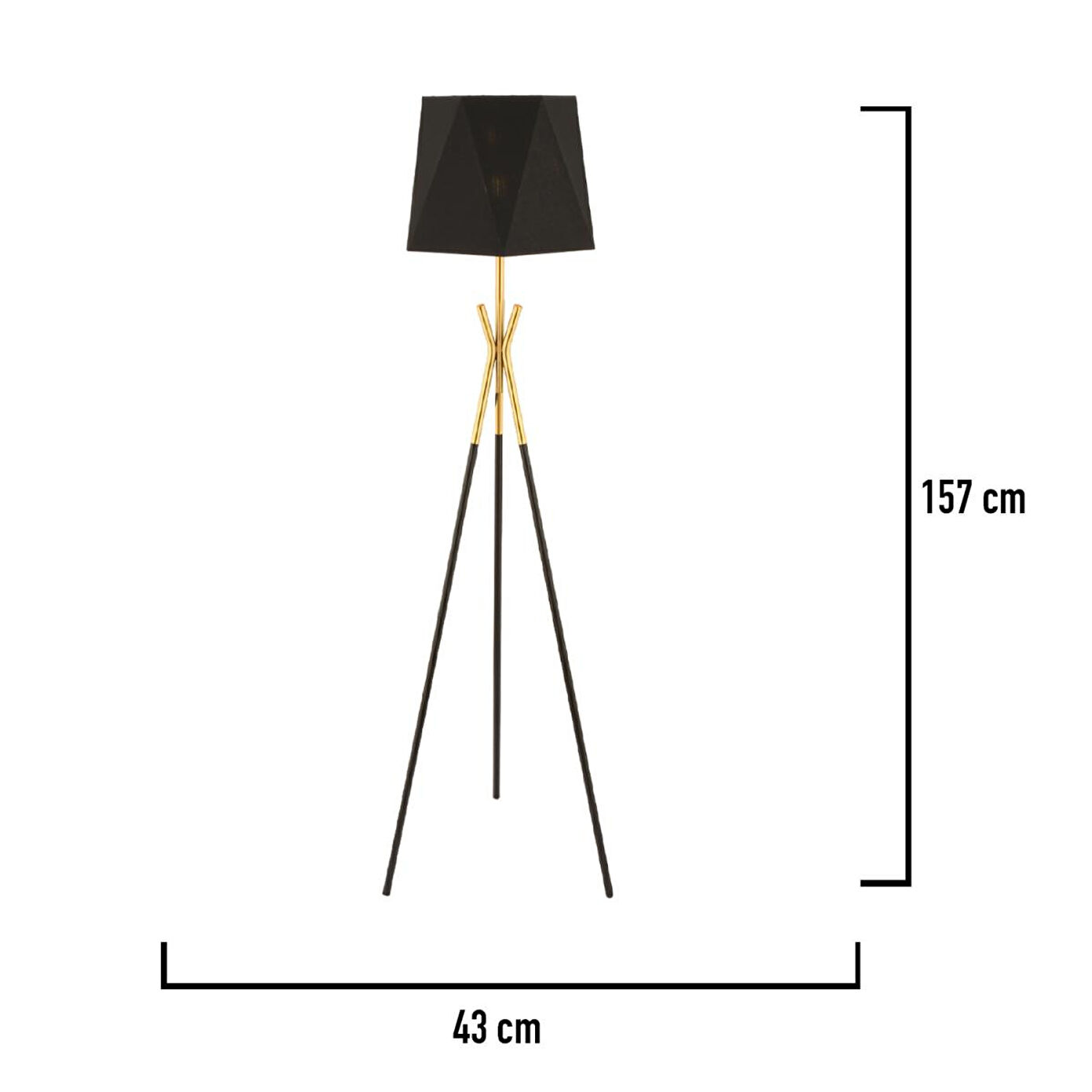 Zarif tasarımıyla yaşam alanlarınıza modern bir dokunuş katacak bu şık tripod lambader, siyah gövde üzerindeki gold detaylarıyla göz alıcı bir uyum sunuyor. Kumaş şapkası sayesinde ışığı yumuşatarak ortama sıcak ve davetkâr bir ambiyans kazandırır. Ürün Özellikleri; Ürün Ebatları: En 43 cm, Boy 57 cm; Renk: Siyah gövde, gold detaylar; Materyal: Gövde metal, şapka kumaş; Duy Tipi: E-27; Ampul: Dahil değildir; Fiş Uzunluğu: 150 cm; Kurulum: Demonte olarak gönderilmektedir; Garanti: 2 yıl