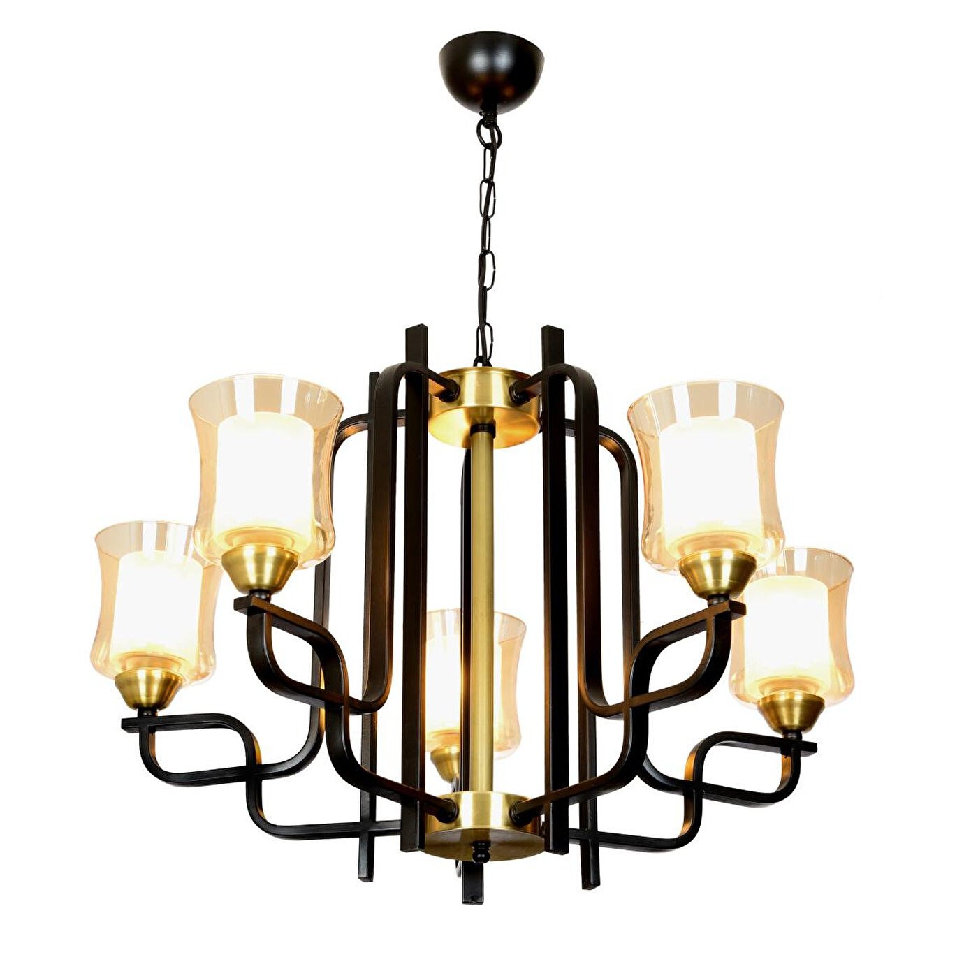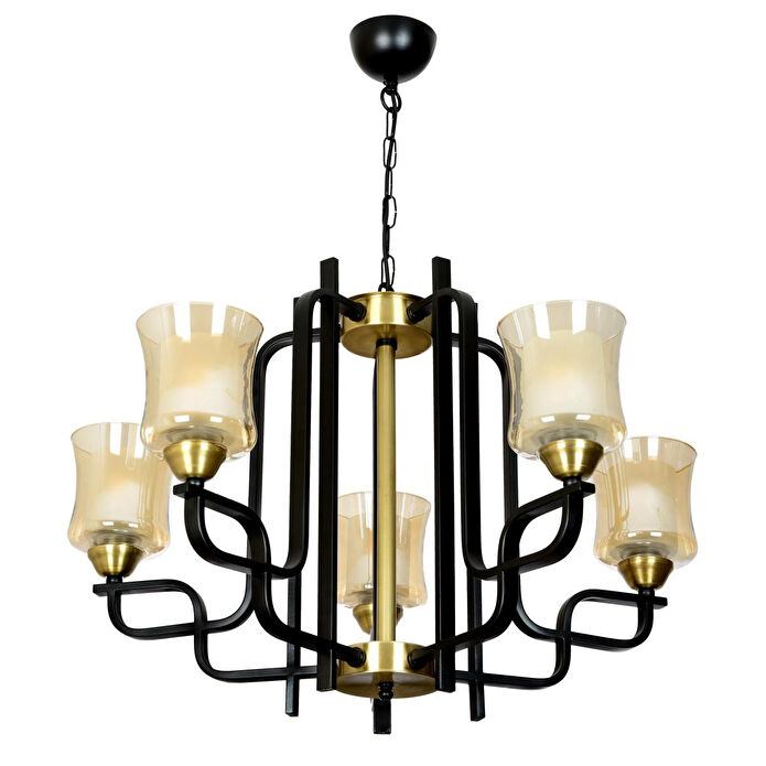 Ampul:E27 5x60 Watt. Ürün materyali : Metal / Cam .Fiyata Ampuller dahil değildir.Ürünümüz dekoratif modern tasarımı ile oturma odalarınız ve salonunuza farklı bir hava katacaktır.Ürünü tüm yaşam alanlarında da rahatlıkla kullanabilirsiniz.Ürünlerimizde kullanılan tüm materyaller 1.sınıf malzemeden üretilmiştir.24 ay garanti kapsamındadır.Taşıma esnasında oluşabilecek hasarlara karşı yedek parça temin edilir.