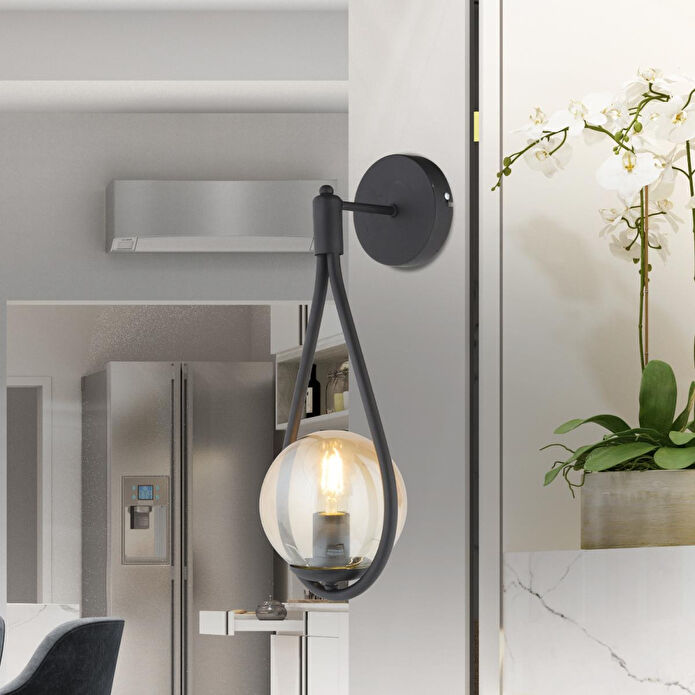 Apliqa Aplik Mirza Tekli Siyah Bal Camlı Modern Duvar Aplik Yatak Başı Salon Aplik