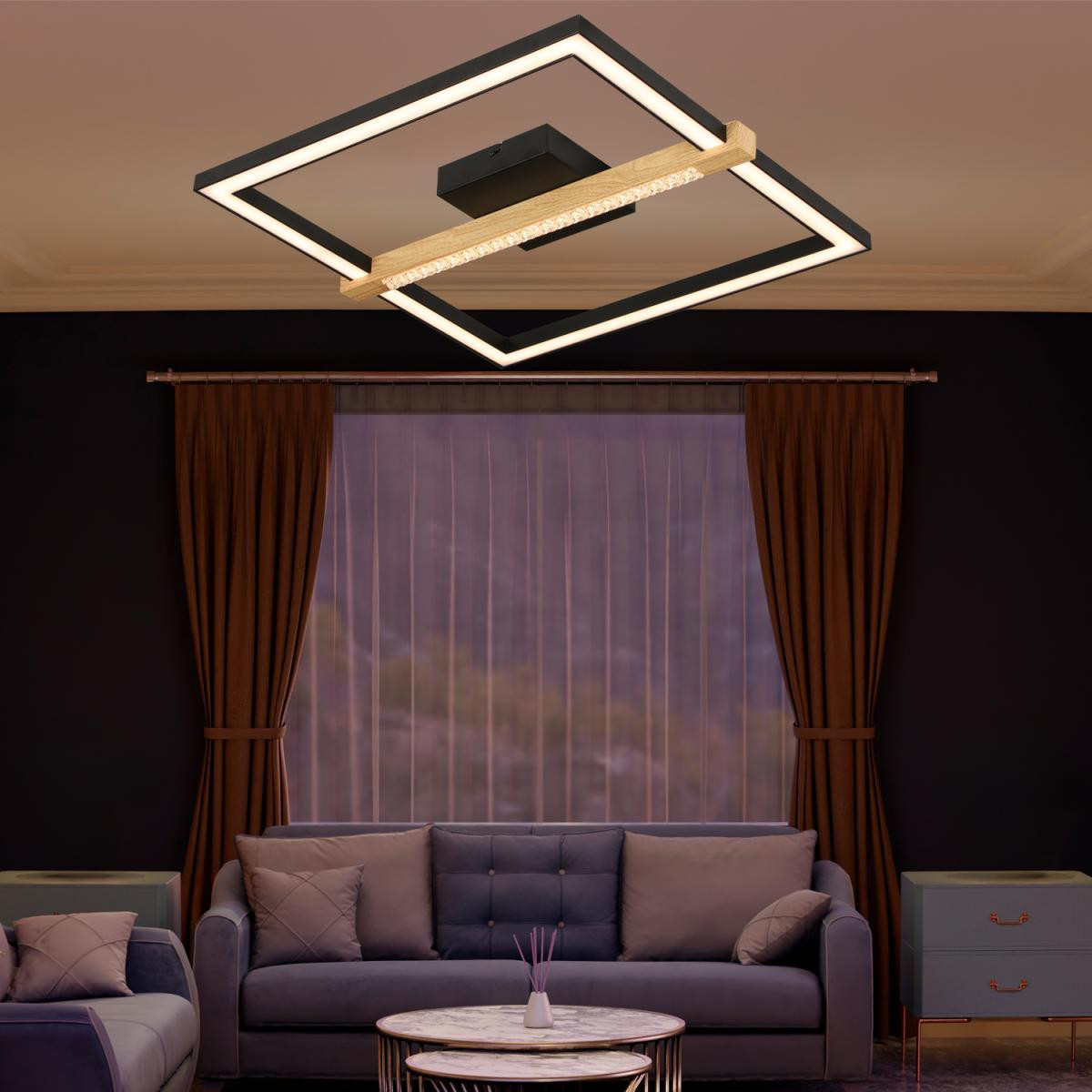 Apliqa April Siyah 58 Watt Plafonyer Kare Ahşap Desenli Modern Salon Led Avize
