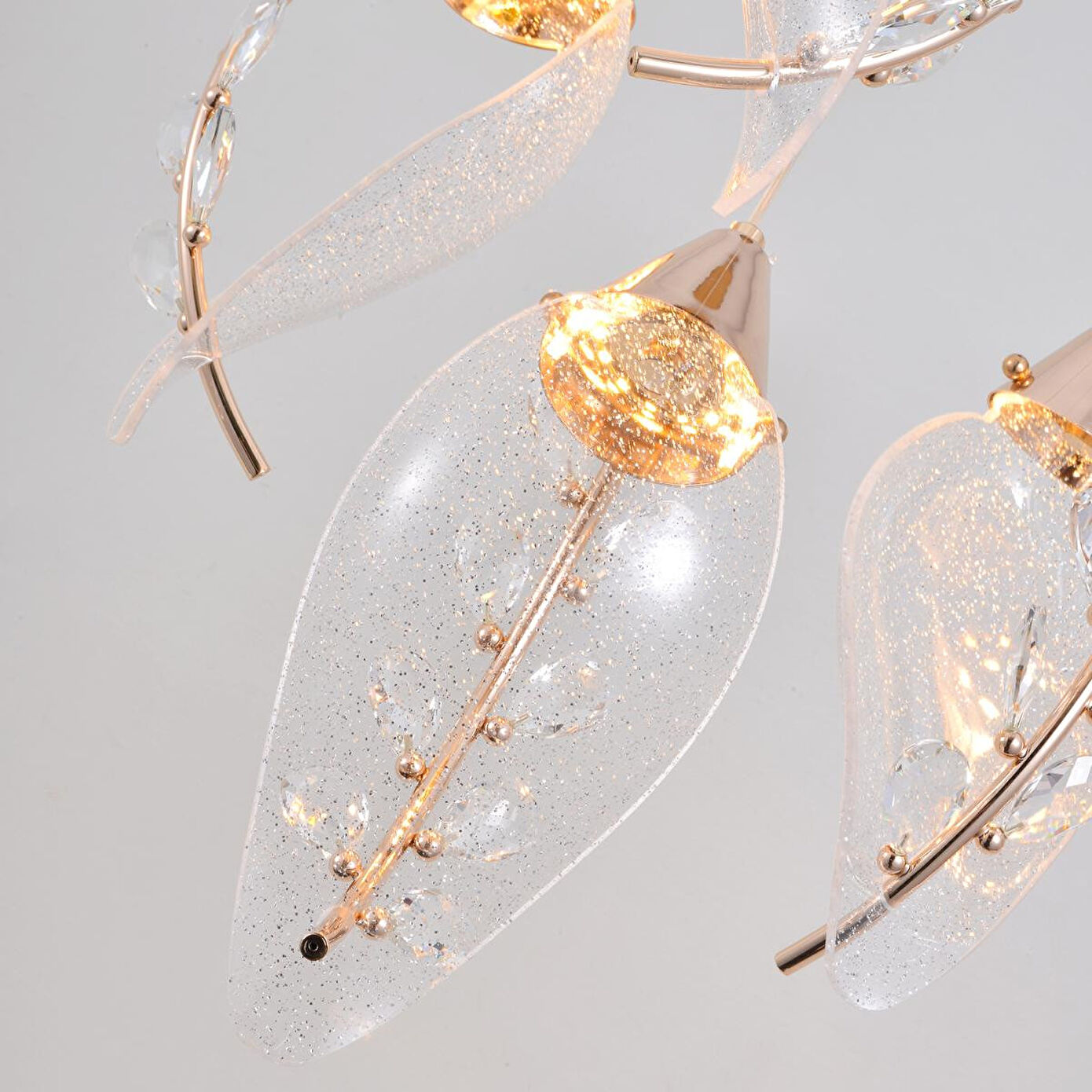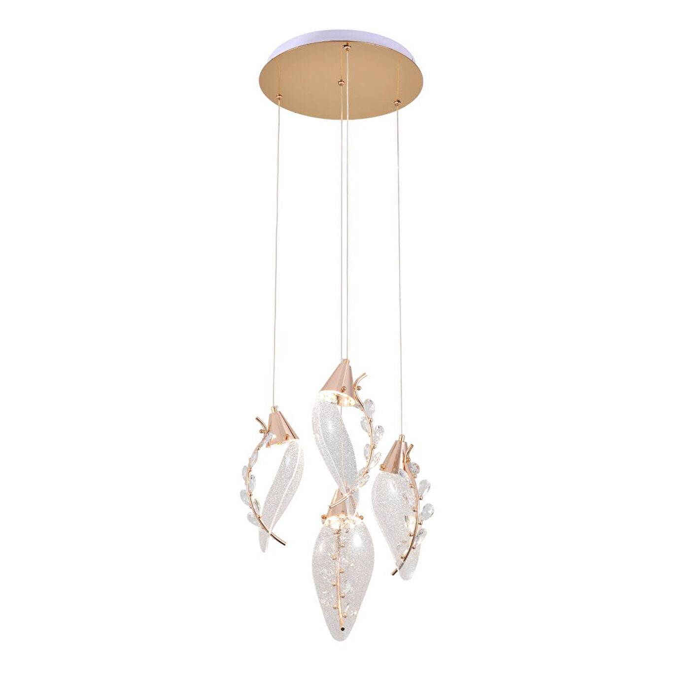 Hem modern hem de romantik bir tasarım çizgisine sahip bu gold çoklu LED sarkıt, ince kıvrımlı formları ve kristal dokulu dekoratif detaylarıyla mekâna sanatsal bir dokunuş kazandırır. 45 cm en ve 150 cm boy ölçülerine sahip geniş tasarımı sayesinde yemek masası, oturma alanı, merdiven boşlukları ve yüksek tavanlı mekanlarda kusursuz bir odak noktası oluşturur. Her bir sarkıt, Gold detaylarla tamamlanmış zarif bir gövde ve ışığı yumuşak şekilde kıran modern LED modüllerinden oluşur. Kıvrımlı şeffaf formlar ışığı etkileyici bir şekilde dağıtarak mekânda sıcak, hoş ve göz yormayan bir aydınlık sağlar.