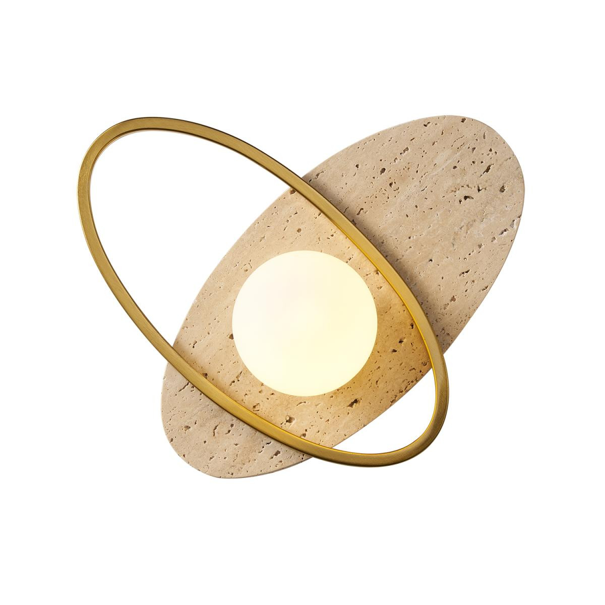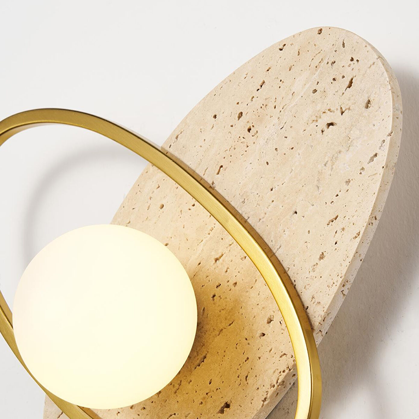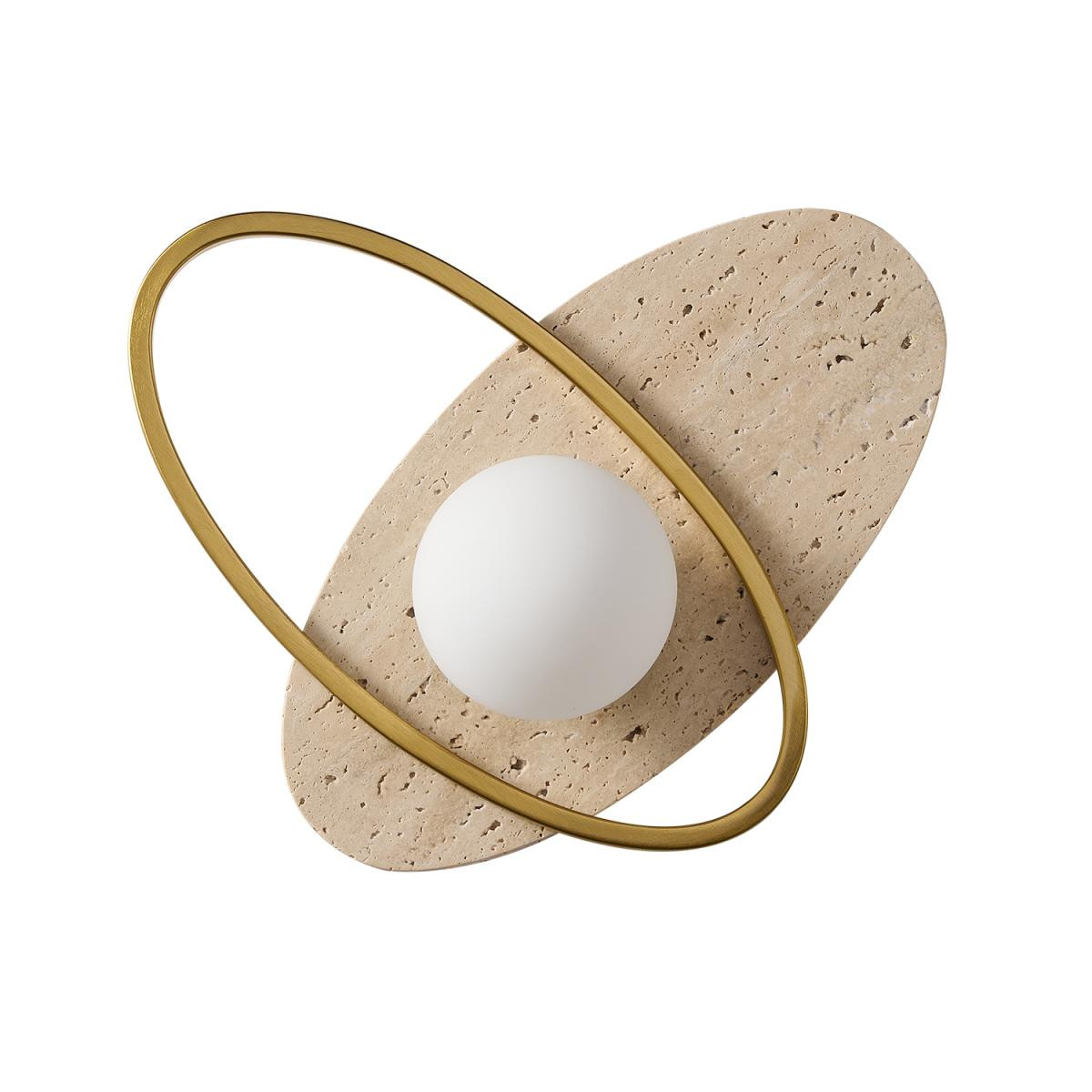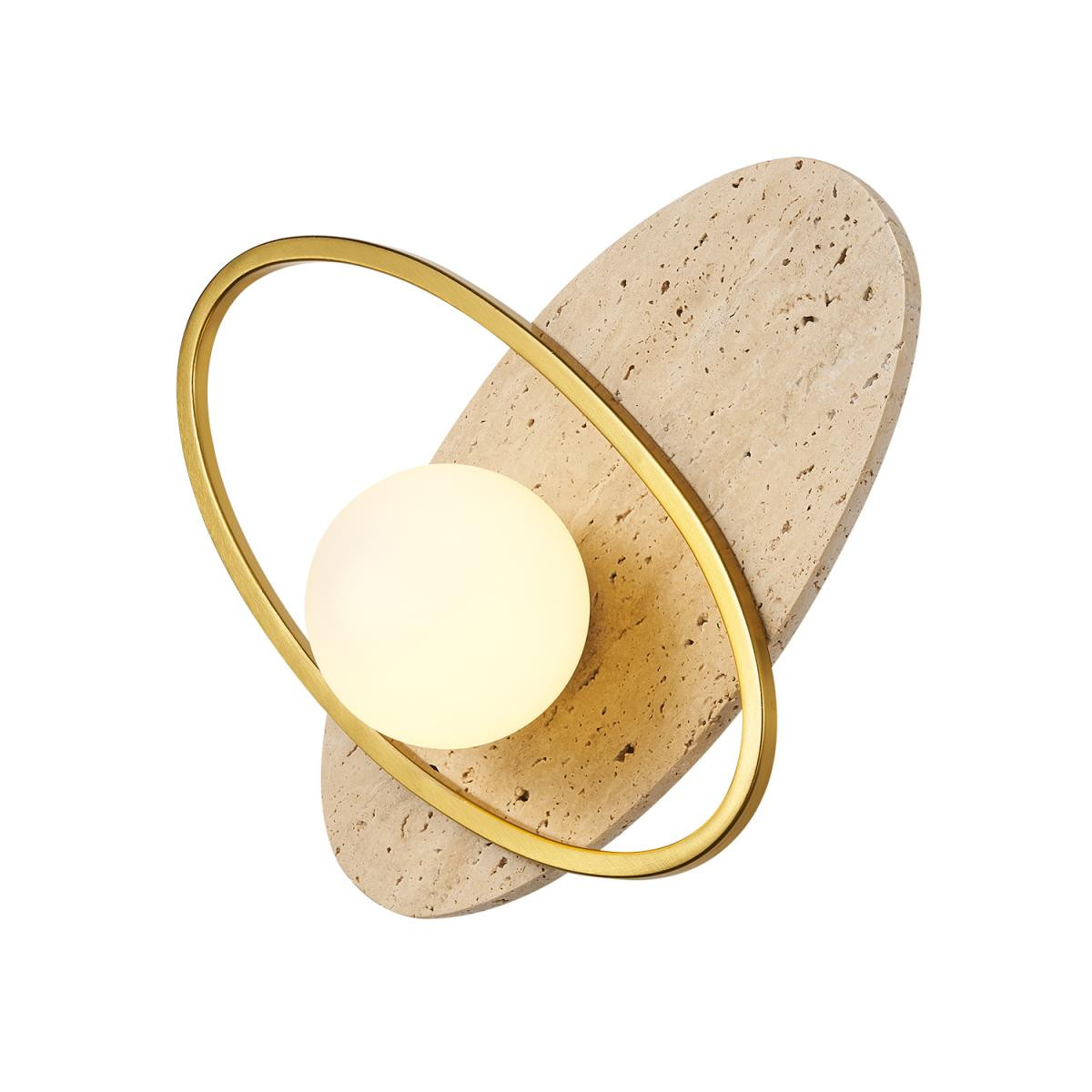 Doğal taş görünümünü modern formlarla buluşturan bu traverten model aplik, dikkat çekici halkalı tasarımıyla duvarda adeta bir sanat objesi etkisi yaratır. 25 cm en ve 25 cm boy ölçüleriyle kompakt fakat oldukça dekoratif bir yapıya sahip olan ürün, G9 duy tipine uygun küre formundaki ışık kaynağı sayesinde mekâna sıcak ve yumuşak bir aydınlatma sunar. Traverten dokulu yüzey ile altın renk metal halkanın birleşimi, ürüne hem doğal hem de lüks bir hava kazandırır. Salon, oturma odası, yatak odası, giriş veya koridor gibi alanlarda duvara modern bir vurgu eklemek isteyenler için mükemmel bir seçimdir.