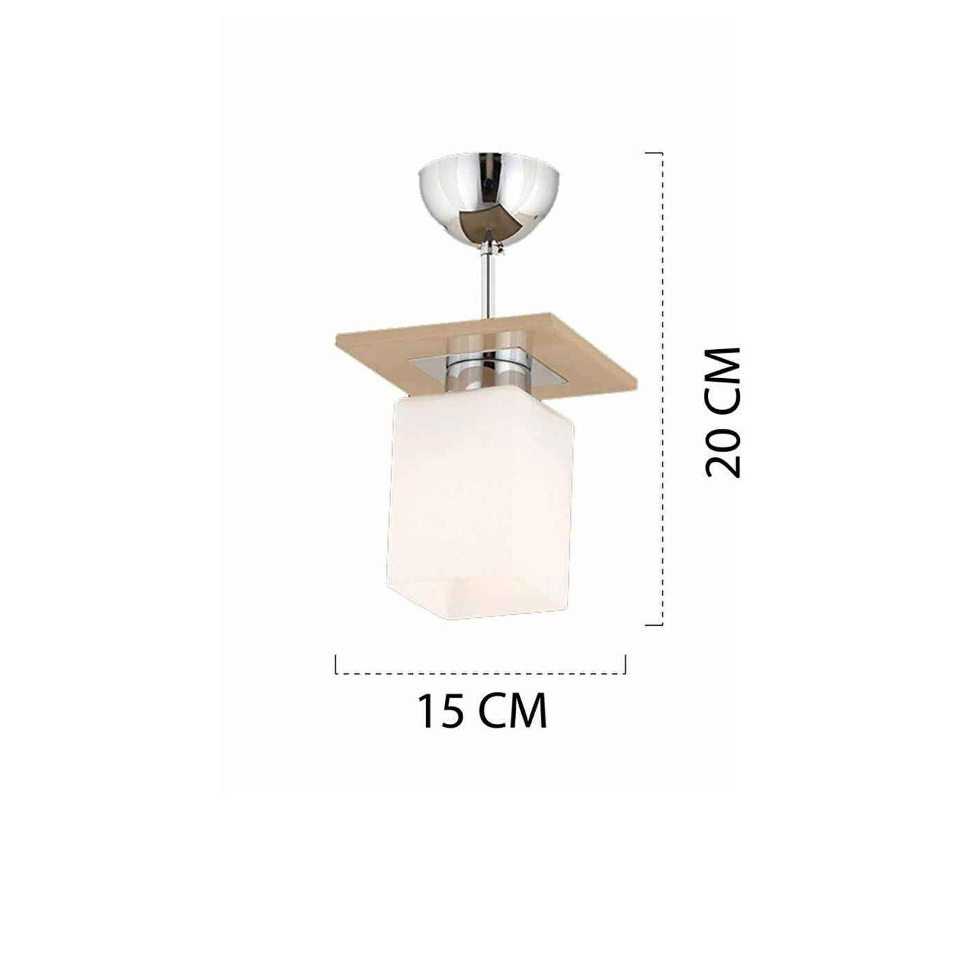 Minimalist tasarımın zarafetiyle evinize modern bir dokunuş yapın! Küçük ölçülerine rağmen güçlü bir aydınlatma sunan bu krom avize, mutfak, antre ya da koridor gibi alanlarda dekoratif bir tamamlayıcıdır. Dayanıklı yapısı ve şık görünümüyle uzun yıllar güvenle kullanabilirsiniz. Özellikler; Ölçüler: En 15 cm x Boy 20 cm; Renk: Krom-kahverengi detaylı Materyal: Metal gövde, cam başlık; Duy Tipi: E-27 (Standart ampul uyumlu); Ampul: Dahil değildir; Boy: Sabit; Garanti: 2 Yıl
