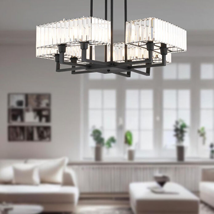 Apliqa Brambles 8'li Siyah Kristalli Taşlı Modern Tasarım Kristal Salon Avize