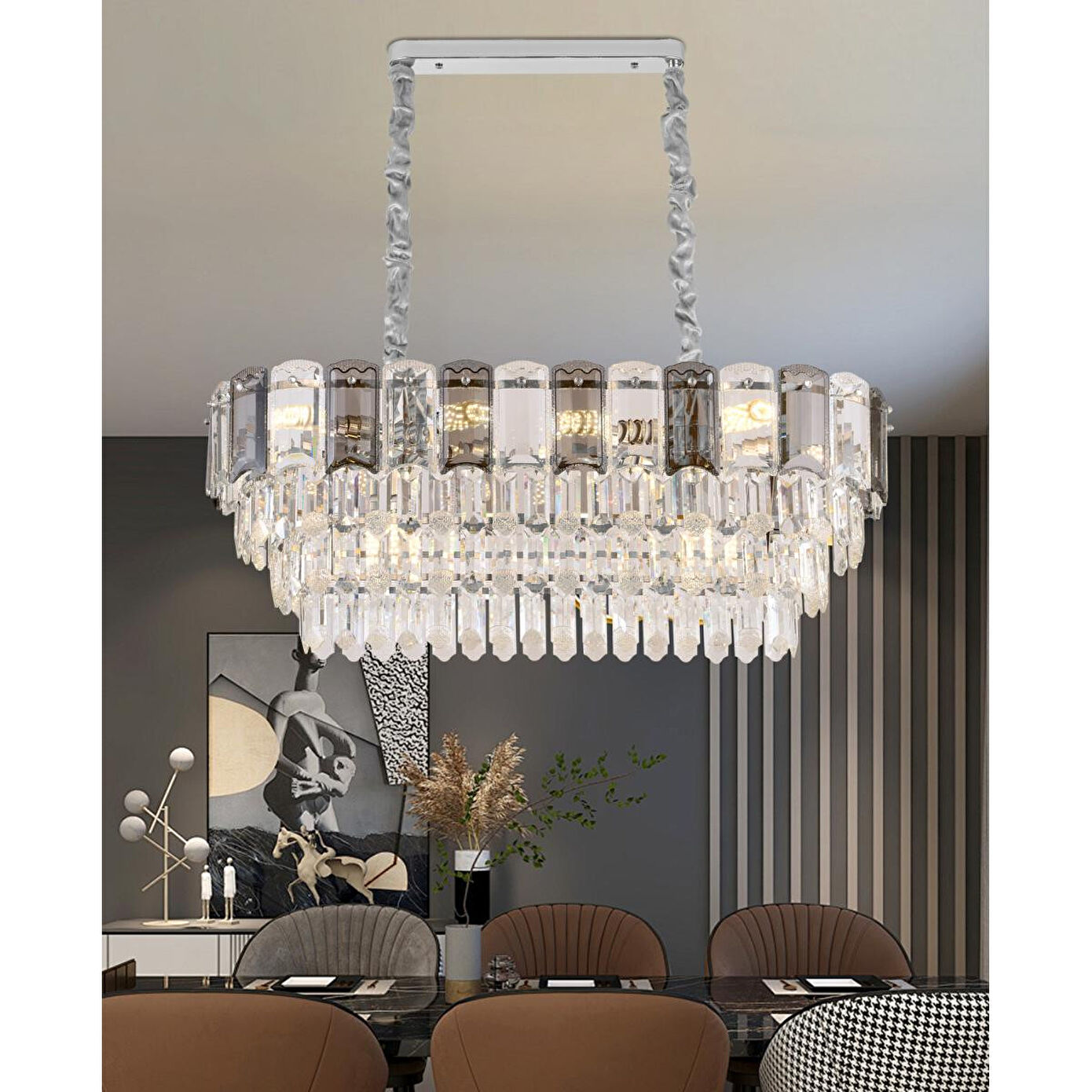 Apliqa Colın 80'lik Yemek Masası Üstü Krom Kaplamalı Kristalli Avize