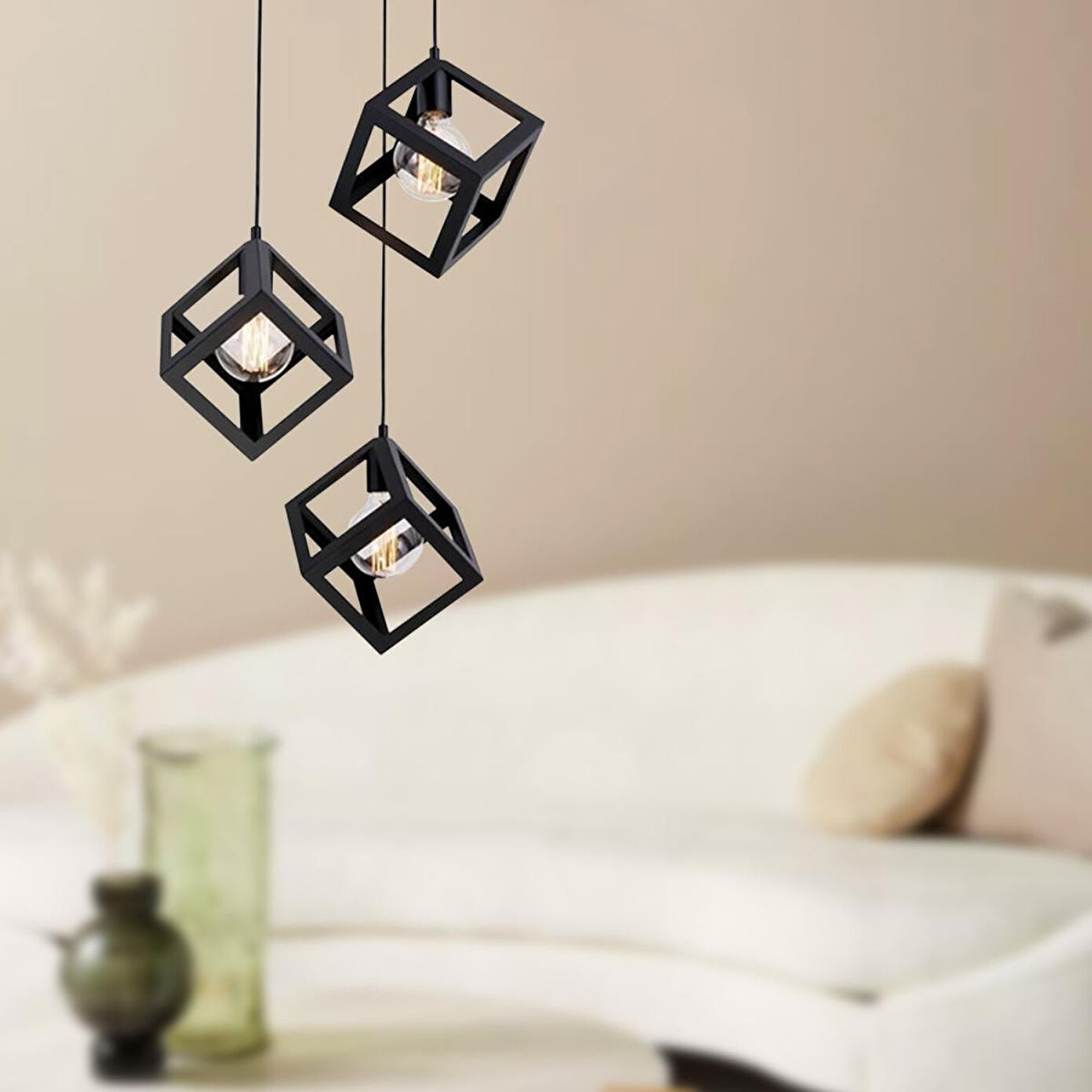 Apliqa Cup 3lü Siyah Sarkıt Modern Genç Odası Mutfak Retro Salon Sarkıt Avize