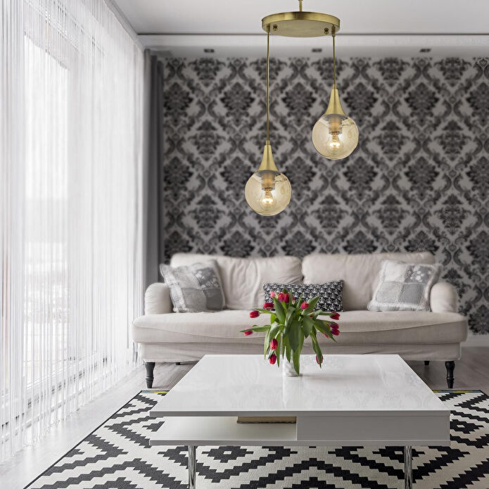 Apliqa Damla 2li Yuvarlak Bal Camlı Eskitme Modern Sarkıt, Mutfakyatak Odası Salon Sarkıt Avize