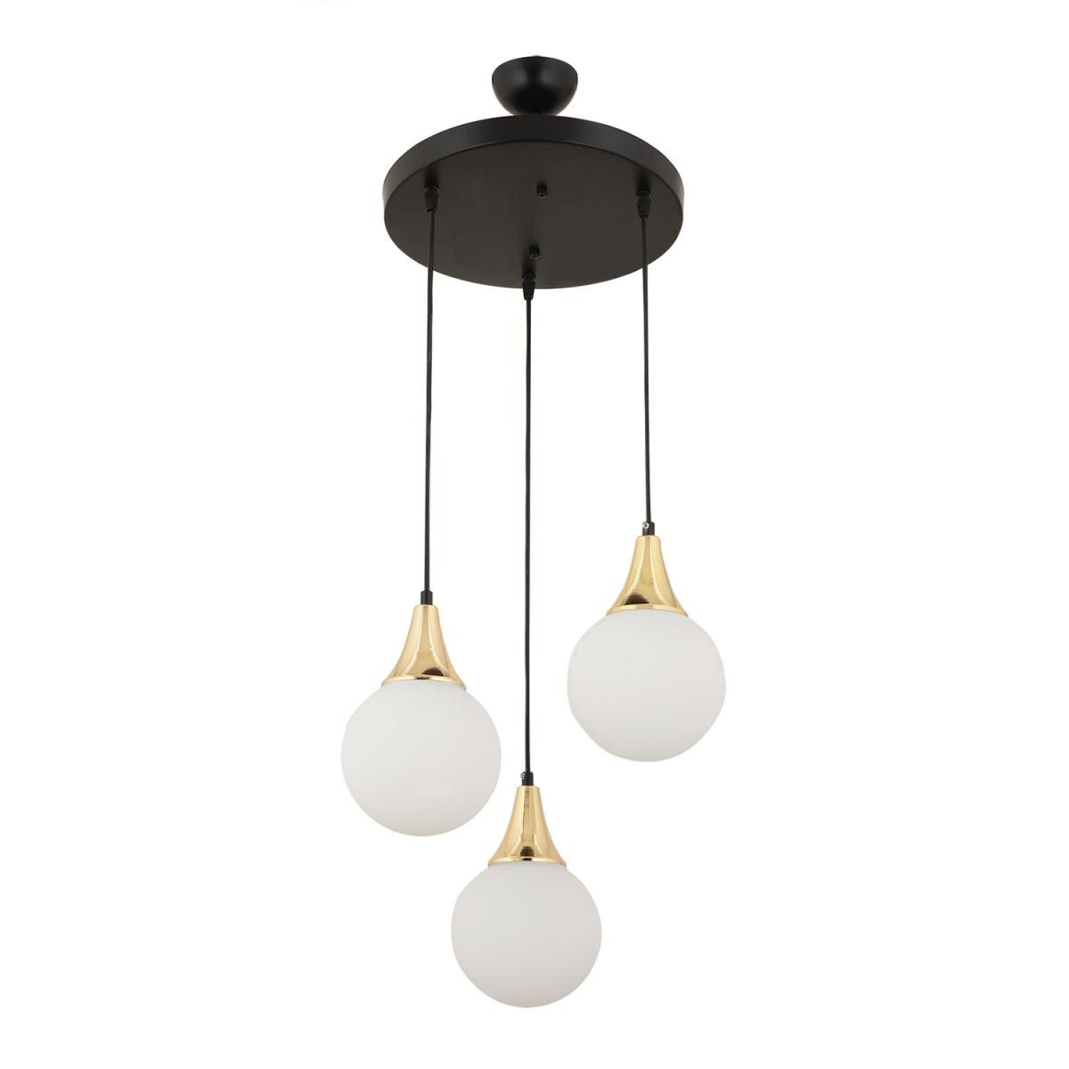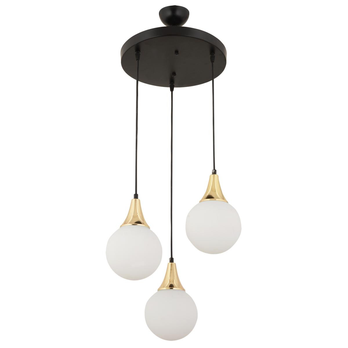 Apliqa Damla 3lü Yuvarlak Siyah Gold Beyaz Camlı Sarkıt Modern Genç Odası Mutfaksalon Avize