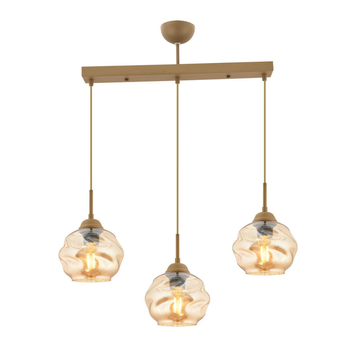 Eskitme rengi zarif gövdesi ve bal cam detaylarıyla tasarlanan bu 3’lü sarkıt avize, yaşam alanlarınıza sıcak ve şık bir atmosfer katmak için mükemmel bir seçimdir. 50 cm en ve 70 cm boya sahip olan bu model, boyu ayarlanabilir yapısıyla farklı tavan yüksekliklerine kolayca uyum sağlar. Metal gövdesi sağlamlık sunarken, bal cam şeffaflığı ve yumuşak ışık dağılımıyla ortamda göz alıcı bir ambiyans oluşturur. Ürün Özellikleri; Ölçüler: En 50 cm, Boy 70 cm (Boy ayarlanabilir); Renk: Eskitme gövde, bal cam; Materyal: Metal gövde, cam başlık; Duy Tipi: E-27; Ampul: 3 adet ampul girişi (ampuller dahil değildir); Garanti: 2 yıl; Kurulum: Demonte gönderim, kolay montaj