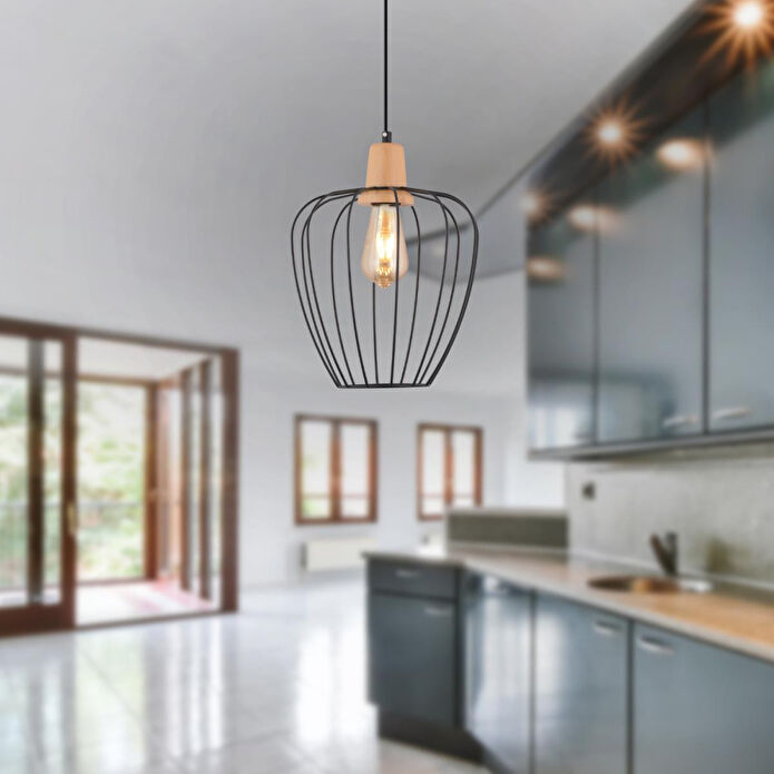 Apliqa Denis Tekli Siyah Telli Ahşap Duylu Modern Koridor, Yatak Odası, Salon Sarkıt Avize
