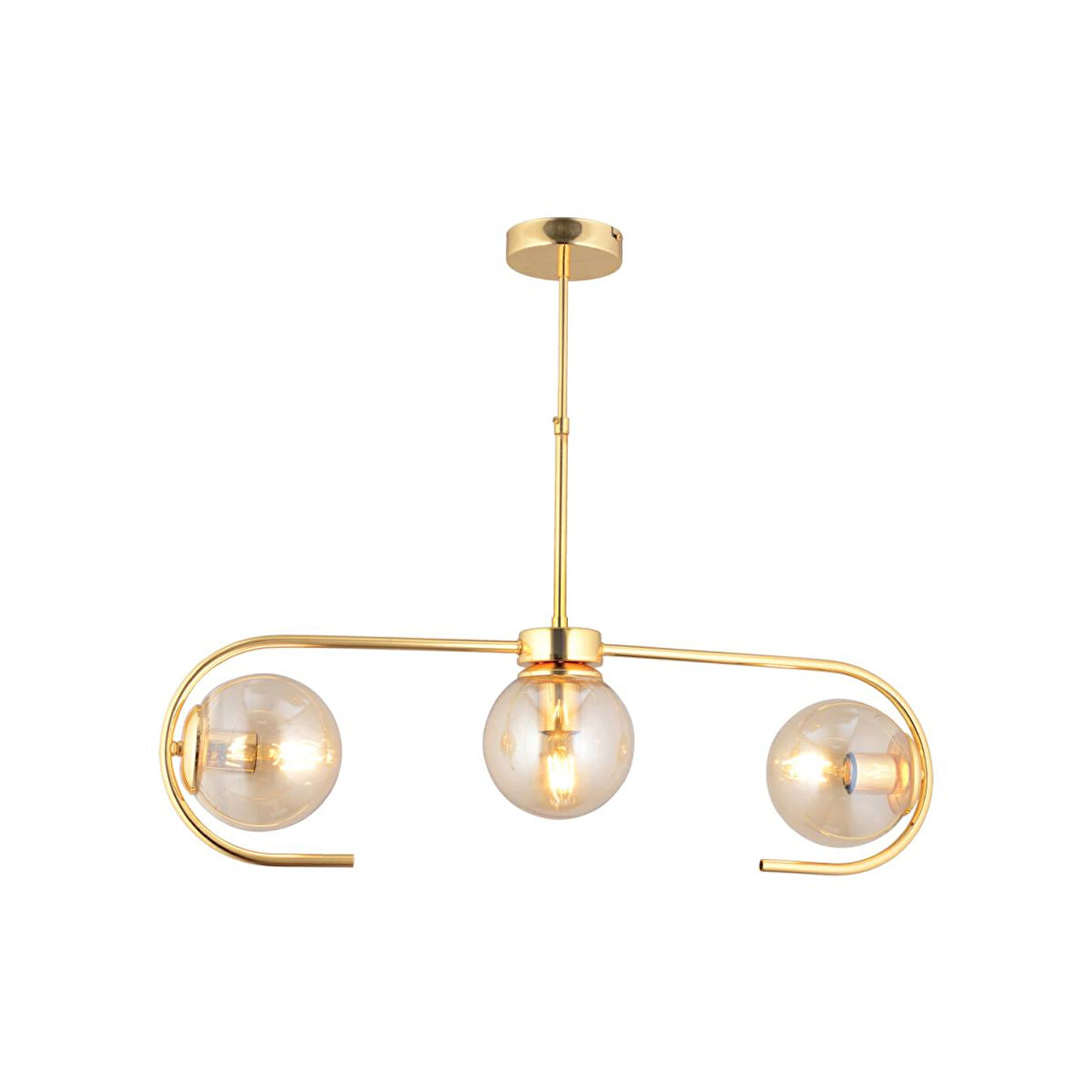Evinizin atmosferini değiştirecek, modern ve zarif bir aydınlatma arıyorsanız bu gold renkli cam başlıklı avize tam size göre! Salon, oturma odası ya da yemek alanlarınızda dekoratif bir şıklık yaratırken güçlü ışık dağılımıyla ferah bir ortam sunar. Ürün Özellikleri; En: 70 cm; Boy: 55 cm; Renk:Gold Materyal: Metal; Başlıklar: Cam; Duy Tipi: E-27; Ampul: Dahil değildir; Boy Ölçüsü: Sabit, Garanti: 2 Yıl