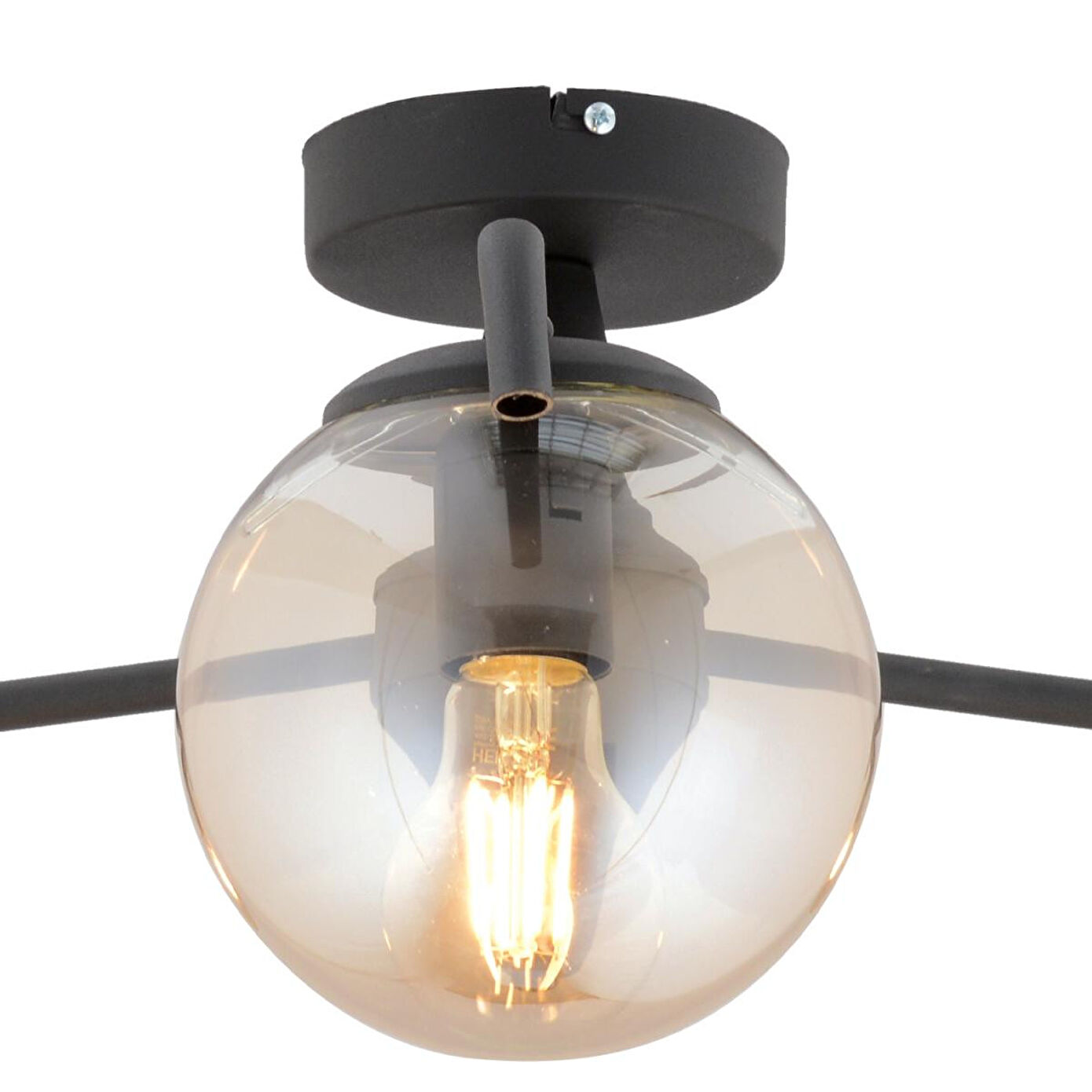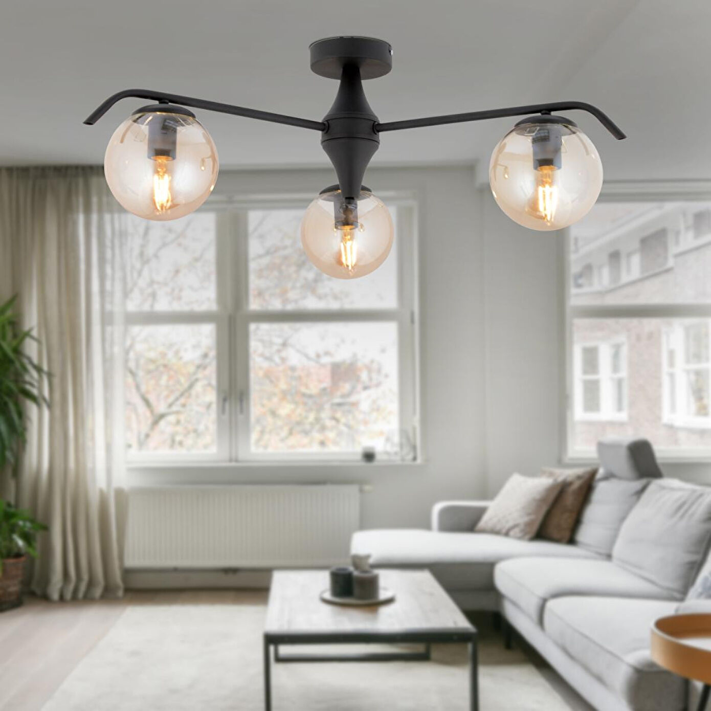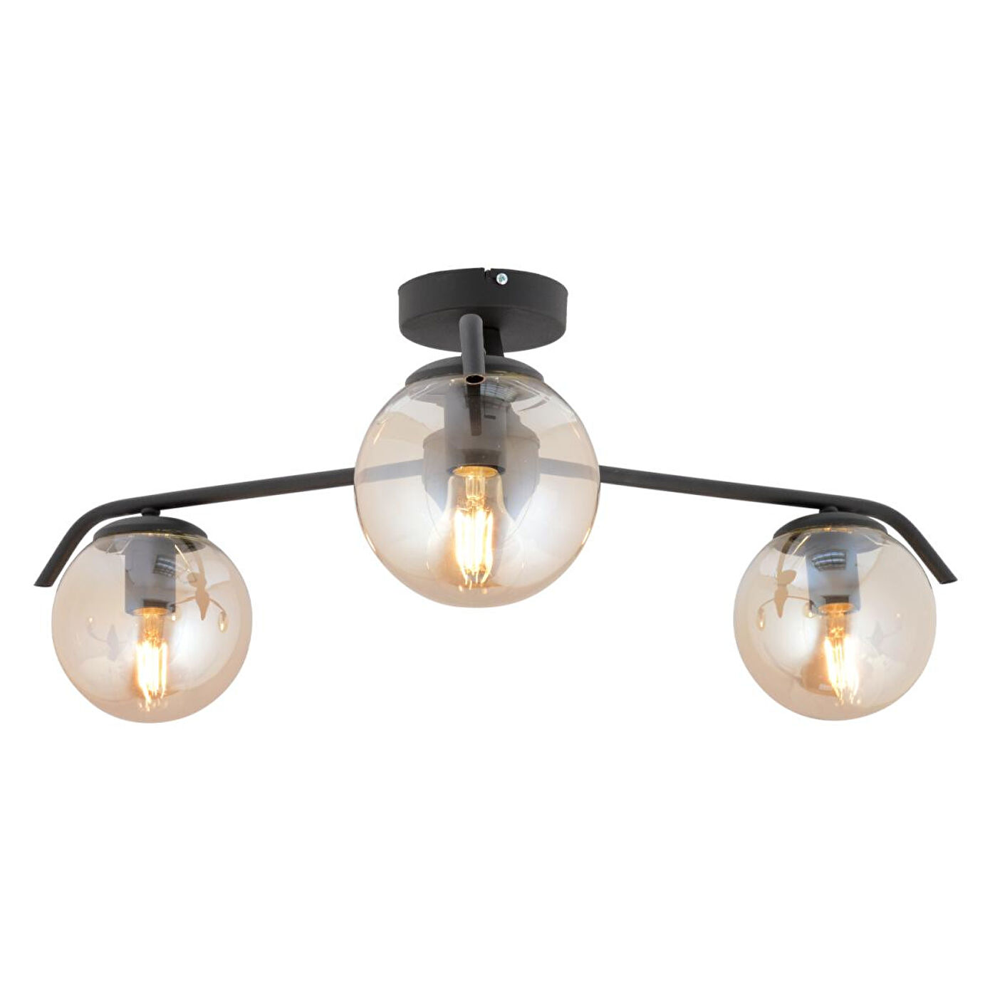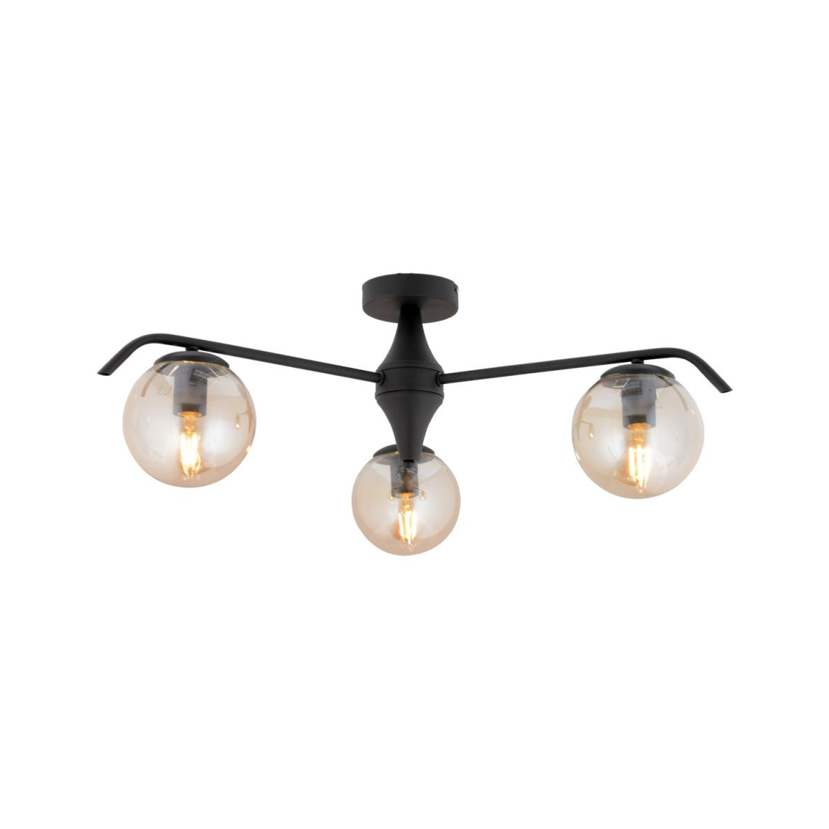 Apliqa Diaspor 3'lü Yuvarlak Siyah Bal Camlı Modern Plafonyer Genç Odası Yatak Odası Retro Salon Avize