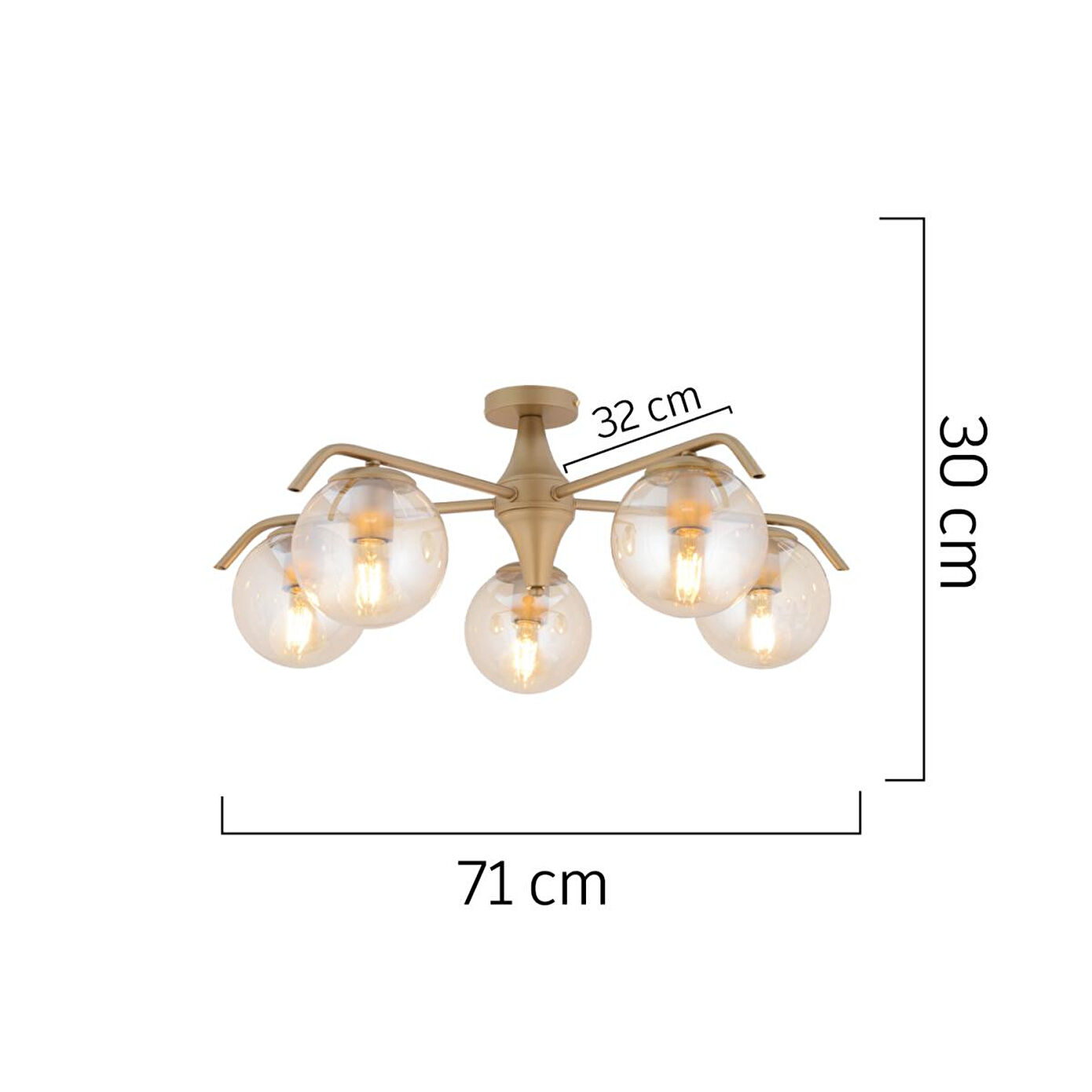 Evinize modern ve şık bir dokunuş katmak istiyorsanız bu eskitme renkte tasarlanmış 5’li cam başlıklı avize tam size göre! Dayanıklı metal gövdesi, cam başlıkları ve estetik formu sayesinde yaşam alanlarınıza hem zarafet hem de güçlü bir aydınlatma sunar. Ürün Özellikleri; En: 70 cm; Boy: 30 cm; Materyal: Metal; Renk: Eskitme; Başlıklar: Cam; Duy Tipi: E-27; Ampuller: Dahil değildir; Boy Ölçüsü: Sabittir; Garanti: 2 Yıl