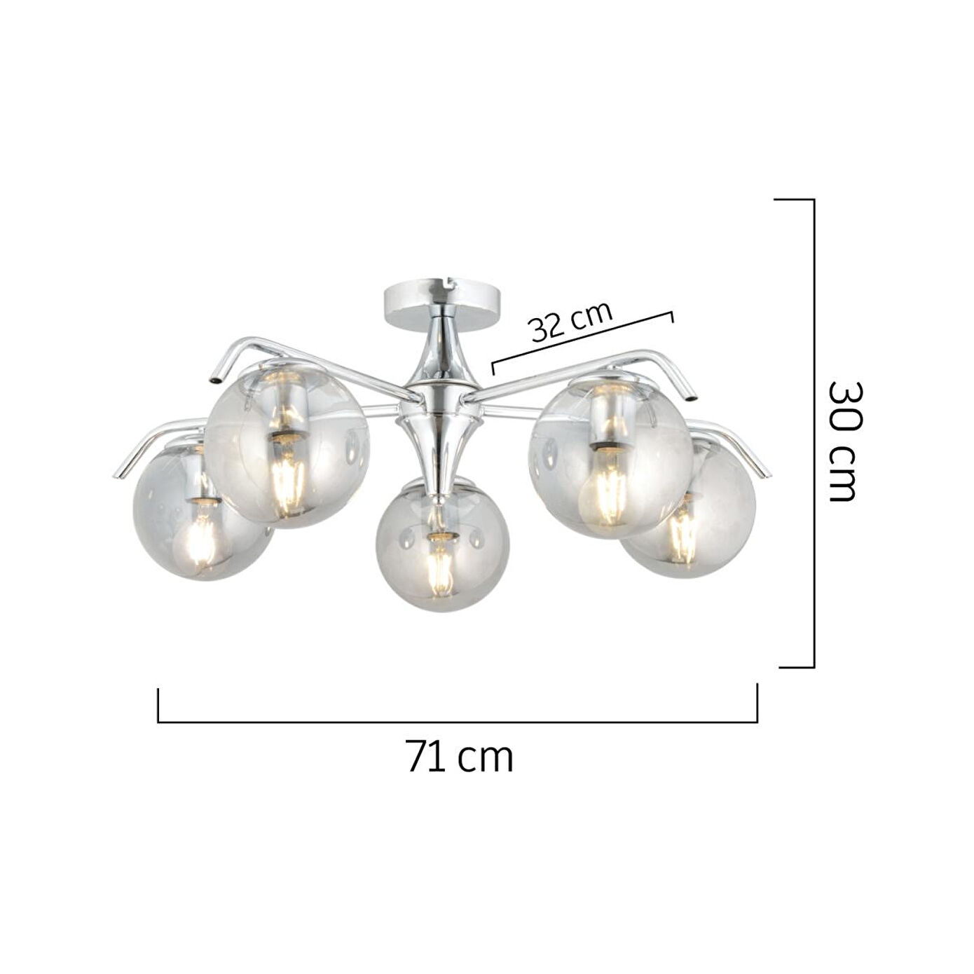 Apliqa Diaspor 5li Yuvarlak Krom Füme Camlı Modern Sarkıt Genç Odası Yatak Odası Retro Salon Avize