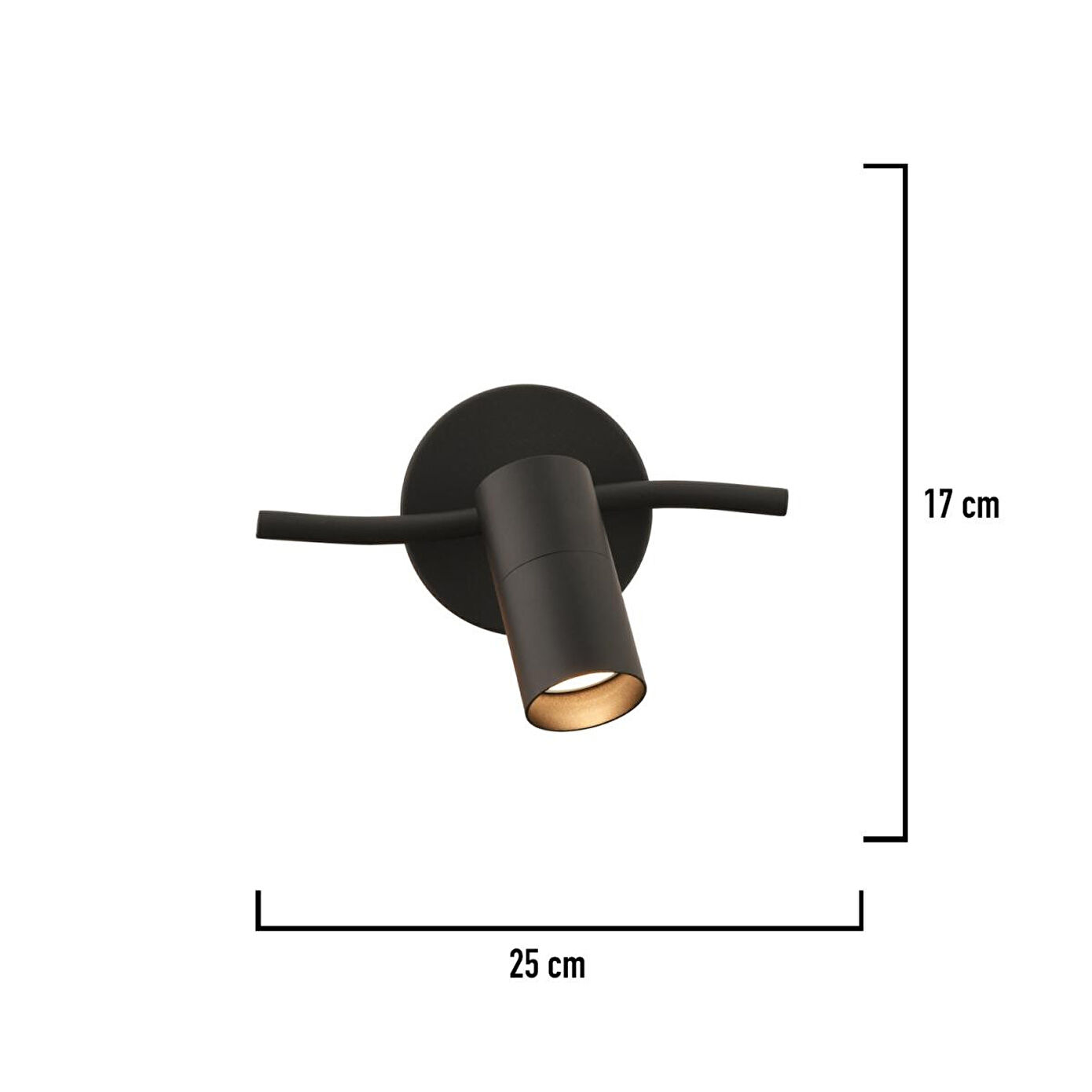 Ürün Eni: 25 cm; Ürün Boyu: 17 cm; Materyal: Metal; Renk: Siyah; Duy Tipi: GU10; Ampul: Dahil değildir; Garanti Süresi: 2 yıl; Modern ve minimal tasarımıyla her ortama uyum sağlayan bu siyah metal aplik, şık görünümünün yanında fonksiyonel aydınlatma sağlar. Dayanıklı metal gövdesi uzun ömür sunarken, GU10 duy tipi sayesinde dilediğiniz ampul ile kullanabilirsiniz. Evinizde, ofisinizde veya vitrin aydınlatmasında tarzınızı yansıtın!
