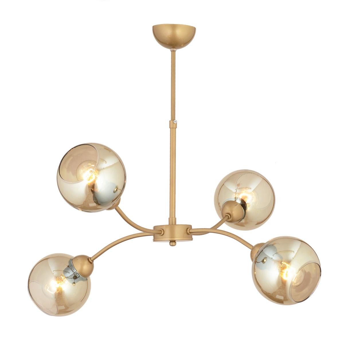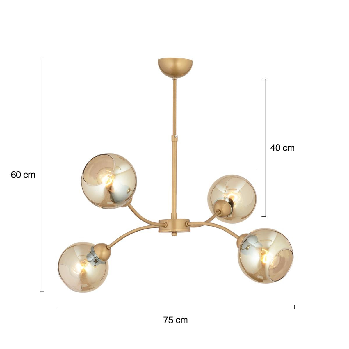 Modern ve şık tasarımıyla yaşam alanlarınıza zarif bir dokunuş katan bu 4 başlıklı avize, güçlü aydınlatma kapasitesi ile dikkat çeker. Eskitme metal gövdesi ve cam başlıkları sayesinde hem dayanıklılık hem de estetik sunar. Oturma odası, salon, yemek alanı veya ofis gibi birçok mekânda şık bir atmosfer oluşturur. Ürün Özellikleri; Ürün Ölçüleri: En 75 cm, Boy 60 cm; Renk: Eskitme Materyal: Dayanıklı metal gövde; Başlıklar: Cam; Boy Ölçüsü: Sabit; Duy Tipi: E-27; Ampuller: Dahil değildir; Kurulum: Demonte gönderilmektedir, kolay montaj; Garanti: 2 yıl garantilidir