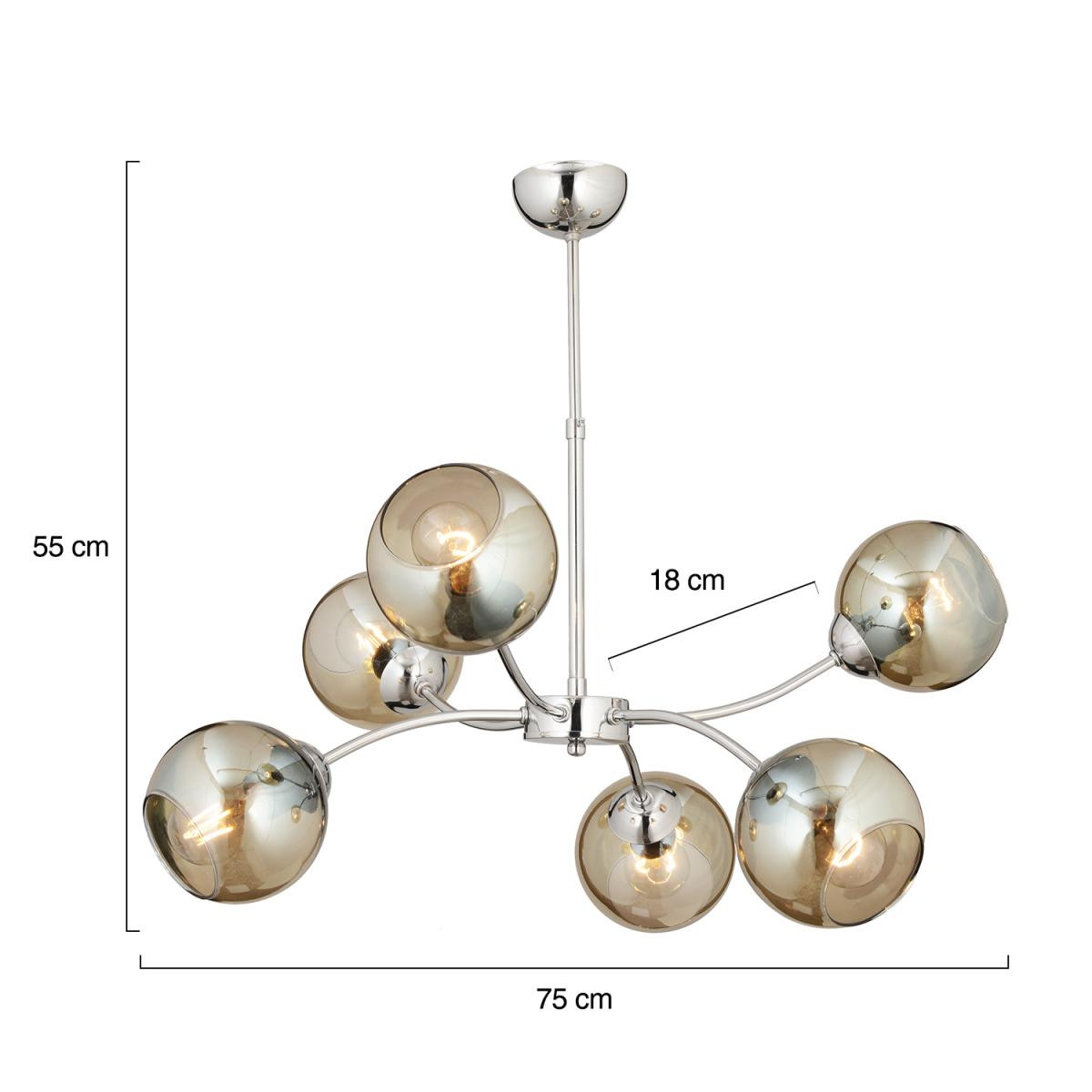 Evinizde modern ve sofistike bir atmosfer yaratmak istiyorsanız bu avize tam size göre! Şık tasarımıyla mekanınıza zarafet katarken, cam başlıklarıyla ışığı yumuşatarak ferah bir ortam sağlar. Kaliteli metal ve camdan üretilen bu model, uzun ömürlü kullanım için ideal bir tercihtir. Ürün Özellikleri; Ürün Ölçüleri: En 75 cm, Boy 60 cm; Renk: Krom; Materyal: Metal gövde, cam başlıklar; Boy Ölçüsü: Sabit; Duy Tipi: E-27; Ampul: Dahil değildir (istenilen ampul ile kullanılabilir); Kurulum: Demonte gönderilir, kolay montaj; Garanti: 2 yıl