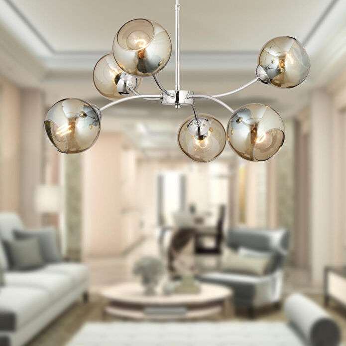 Apliqa Ecvet 6lı Krom Modern Oturma Odası Yatak Odası Salon Avize