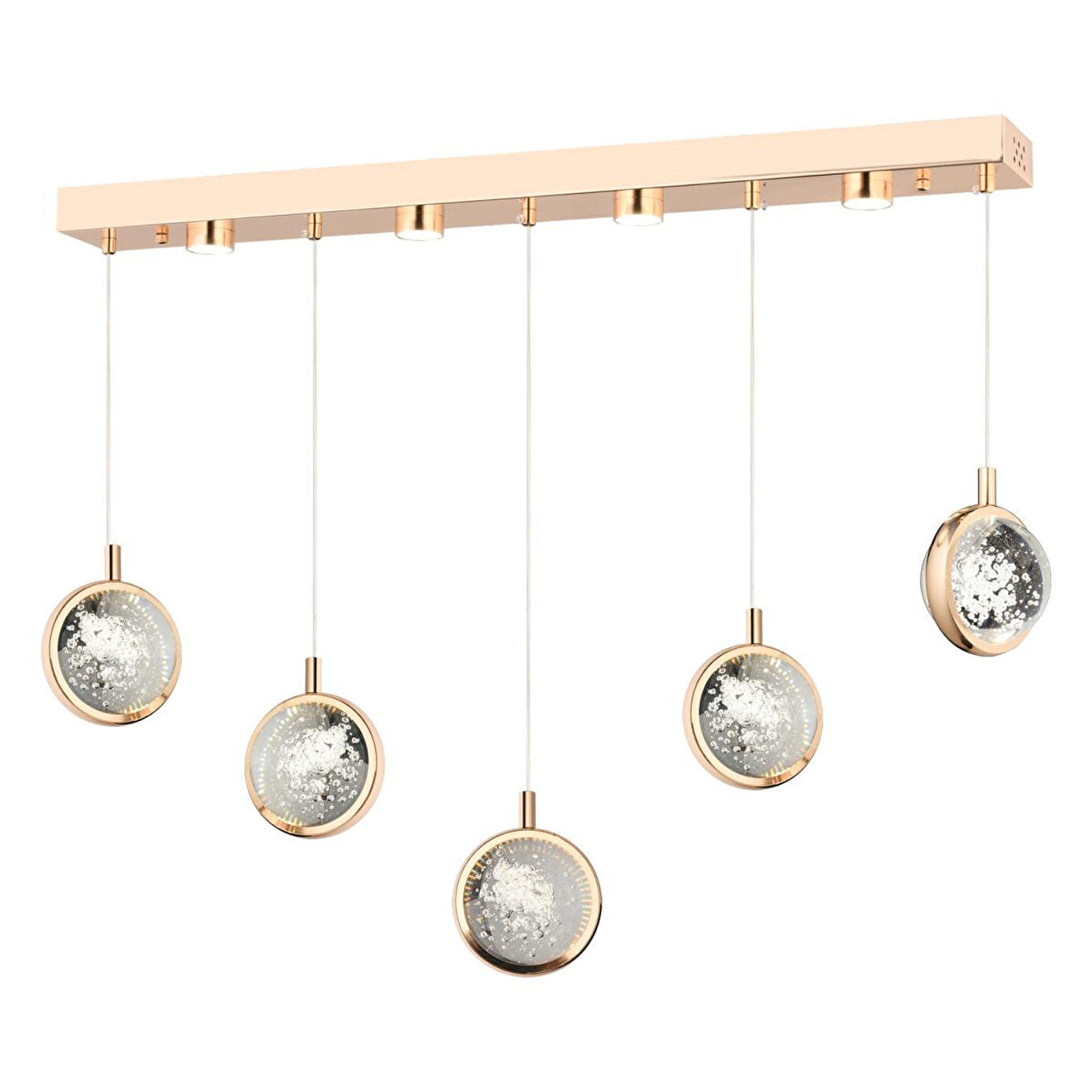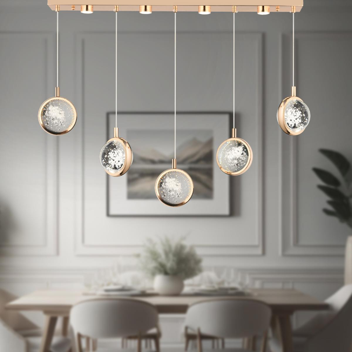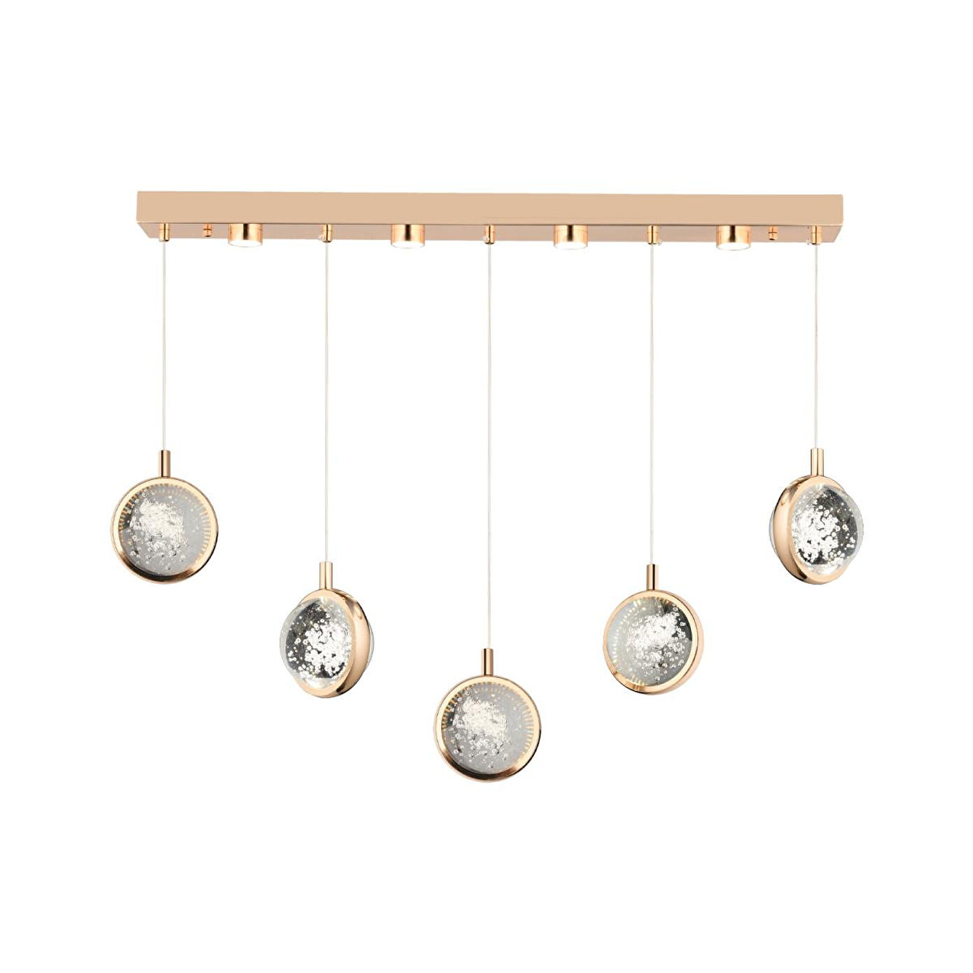 Apliqa Eldon 5'li Sıralı 3 Renk 75 Watt Gold Kristal Ledli Modern Oturma Odası Salon Sarkıt Avize