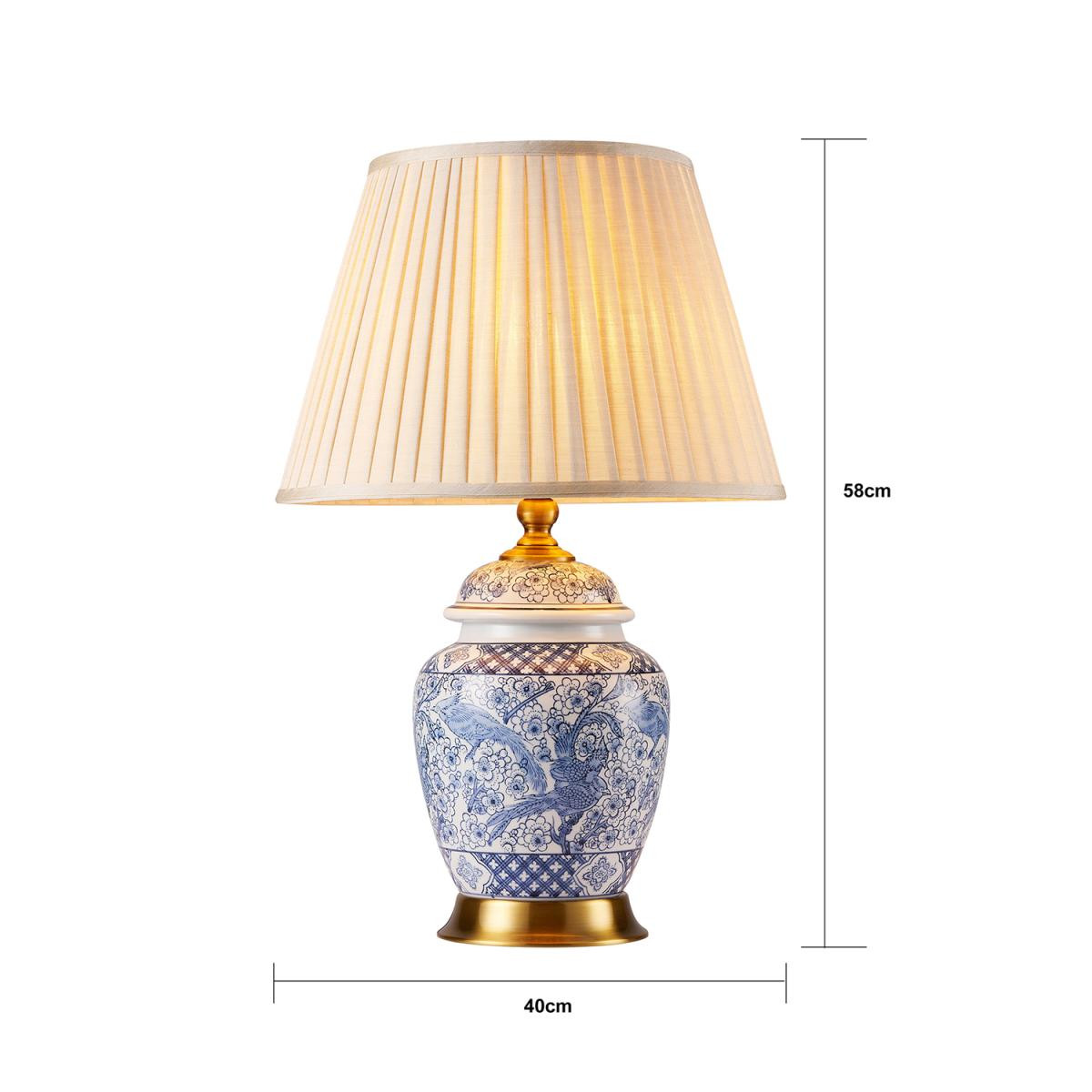 Apliqa Elea Bleu Blanc Desenli Seramik Oturma Odası Salon Abajur