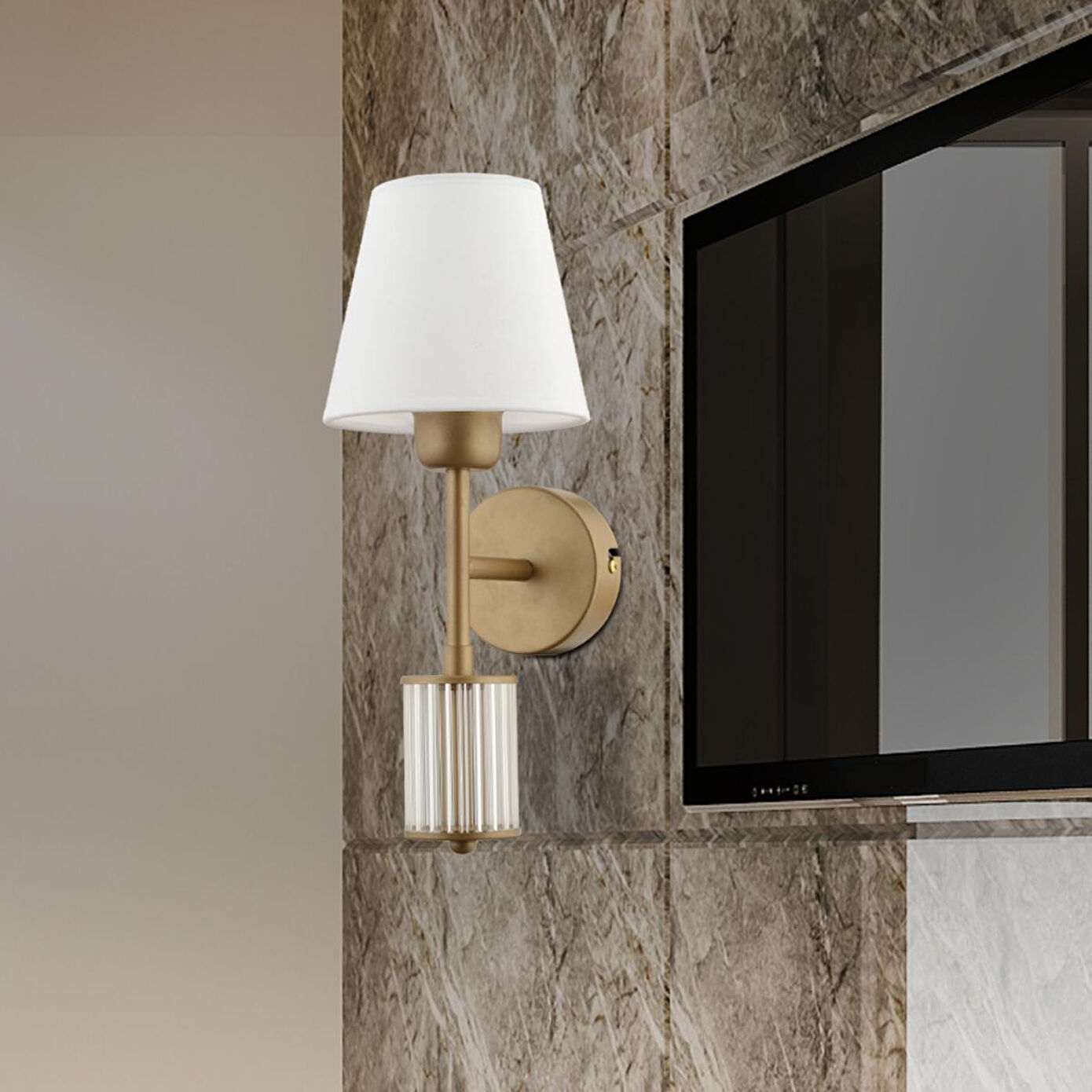 Yaşam alanlarınıza sıcaklık ve zarafet katmak istiyorsanız Eskitme Metal Aplik, tam size göre! Hem şık görünümü hem de altındaki ışıltılı kristal detayları ile odanıza lüks bir hava katar.; Yatak odası, salon, otel veya koridor gibi birçok alanda kullanılmaya uygun olan bu aplik, dekorasyonunuza modern bir dokunuş eklerken kaliteli ışıklandırma sağlar.; Ürün Özellikleri; En: 28 cm; Boy: 40 cm; Materyal: Metal gövde; Renk: Eskitme; Detaylar: Alt bölümde kristal süslemeler; Şapka: Beyaz kumaş; Duy Tipi: E-27; Ampul: Dahil değildir; Garanti: 2 yıl