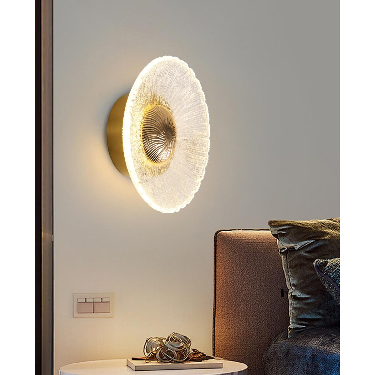 Modern ve lüks çizgilerin birleşimiyle tasarlanan bu LED aplik, kristal dokulu dairesel yüzeyi ve altın merkez detayıyla bulunduğu mekâna göz alıcı bir ışıltı kazandırır. 18 cm en ve 18 cm boy ölçülerindeki kompakt formu, hem küçük hem büyük alanlarda dekoratif bir vurgu oluşturmak için idealdir. Kristal dokulu özel yüzey, LED ışığı kırarak çevreye parlak fakat göz yormayan bir ışıltı yayar. Altın tonlu gövde ise tasarıma premium bir görünüm katarken, ışığın sıcaklığını daha da öne çıkarır. Aplik duvarda hem fonksiyonel bir ışık kaynağı hem de dikkat çekici şık bir aksesuar olarak öne çıkar.