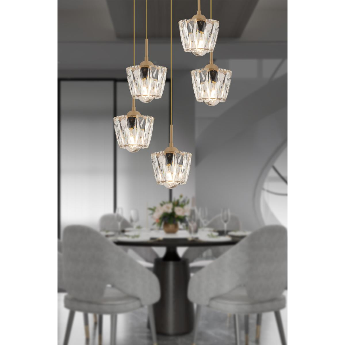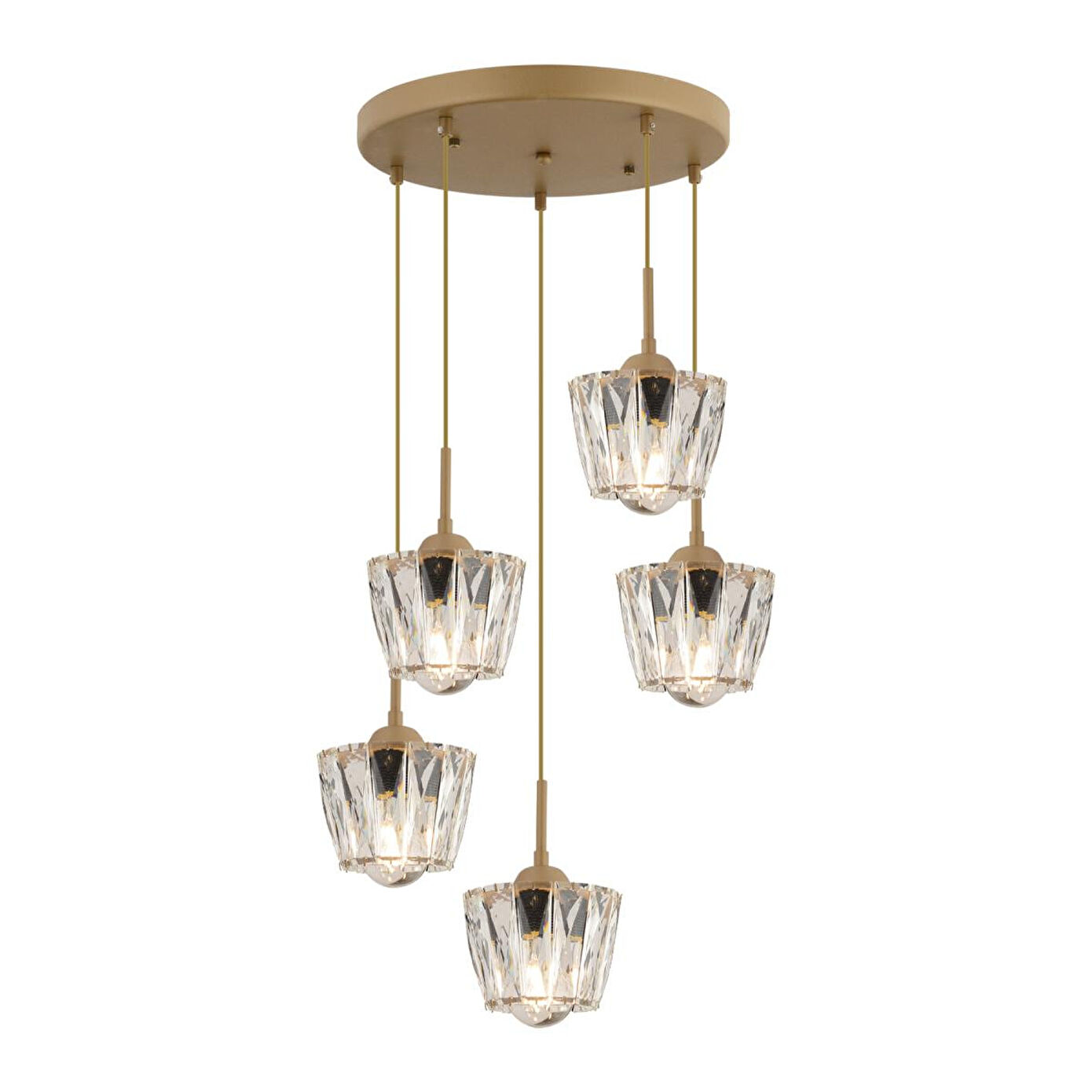 Apliqa Fernando 5 Li Yuvarlak Eskitme Kristal Taşlı Salon Avize