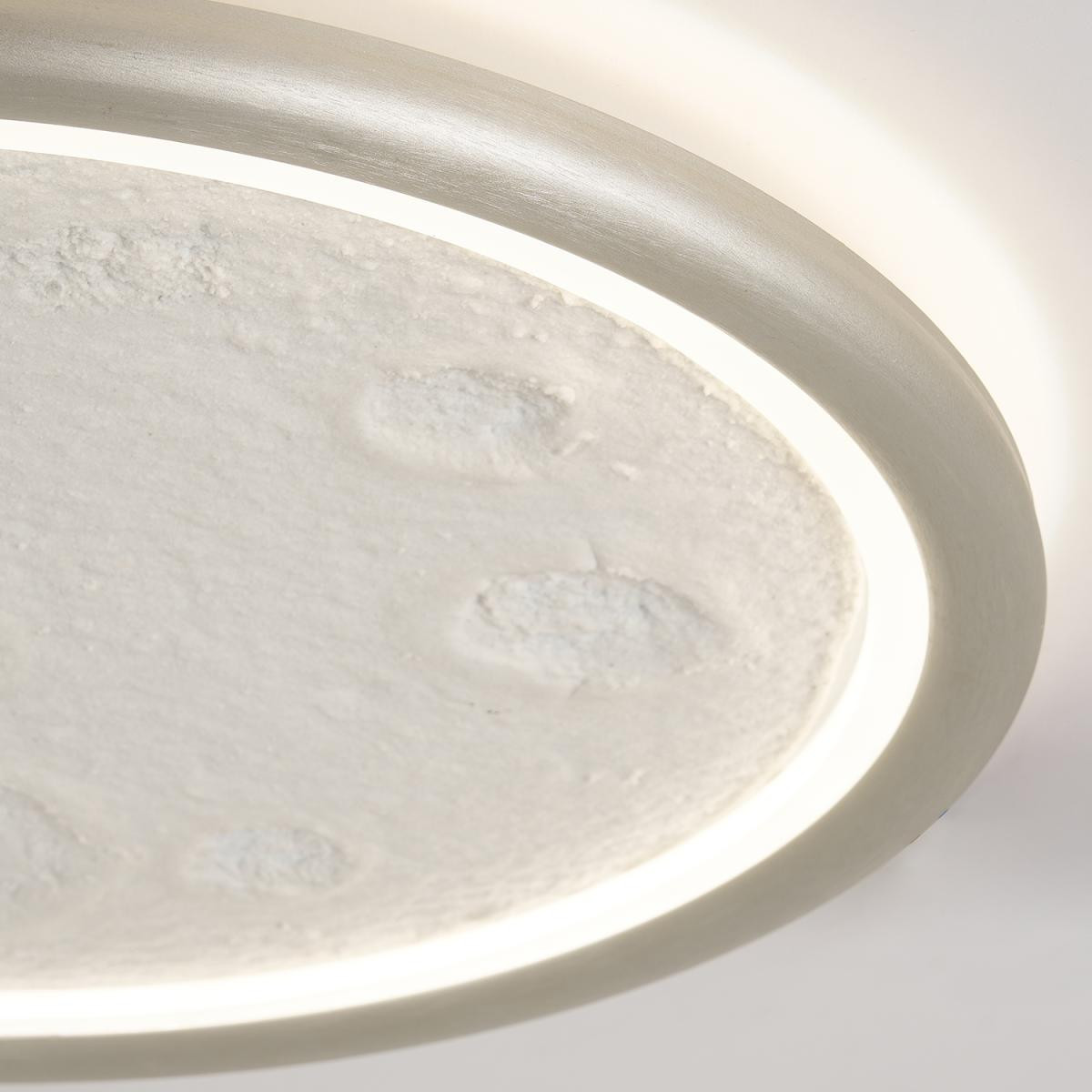 Modern ve zarif tasarımıyla yaşam alanlarınıza sofistike bir dokunuş katan bu LED tavan armatürü, ay yüzeyini andıran özel desenli yüzeyiyle dikkat çekiyor. Beyaz renkli tasarımı, metal ve mika materyal kombinasyonu ile hem dayanıklılık hem de şıklık sağlar. LED aydınlatma teknolojisi sayesinde enerji tasarrufu yaparken uzun ömürlü kullanım imkânı sunar. Ürün Özellikleri: En: 50 cm Boy: 45 cm Renk: Beyaz Materyal: Metal ve mika Aydınlatma Türü: LED Garanti: 2 yıl