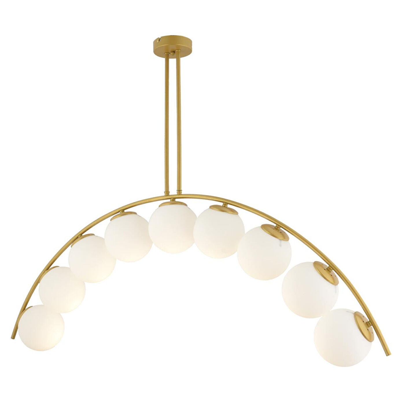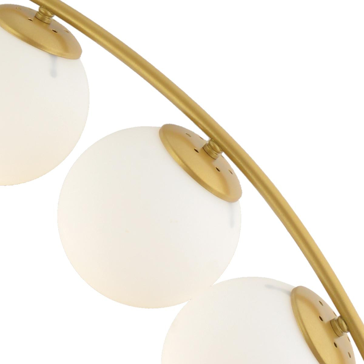 Metal gövdesi sayesinde uzun yıllar dayanıklılık sunarken, cam başlıkları ile ışığı homojen bir şekilde dağıtır. Salon, yemek odası, mutfak veya oturma odanızda dekorasyonunuzu tamamlayacak bu avize, minimalist ve lüks çizgiyi aynı anda yakalamanız için ideal bir seçimdir. Ürün Özellikleri; Ürün Eni:180 cm; Ürün Boyu: 60 cm; Renk: Gold; Materyal: Metal; Başlıklar: Cam; Duy Tipi: E-27; Ampuller: Dahil değildir; Boy Ölçüsü: Sabit; Kurulum: Demonte gönderilmektedir; Garanti: 2 yıl garantilidir