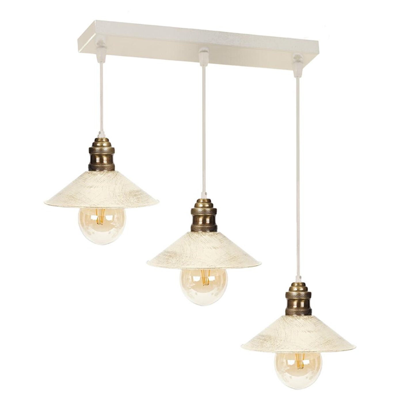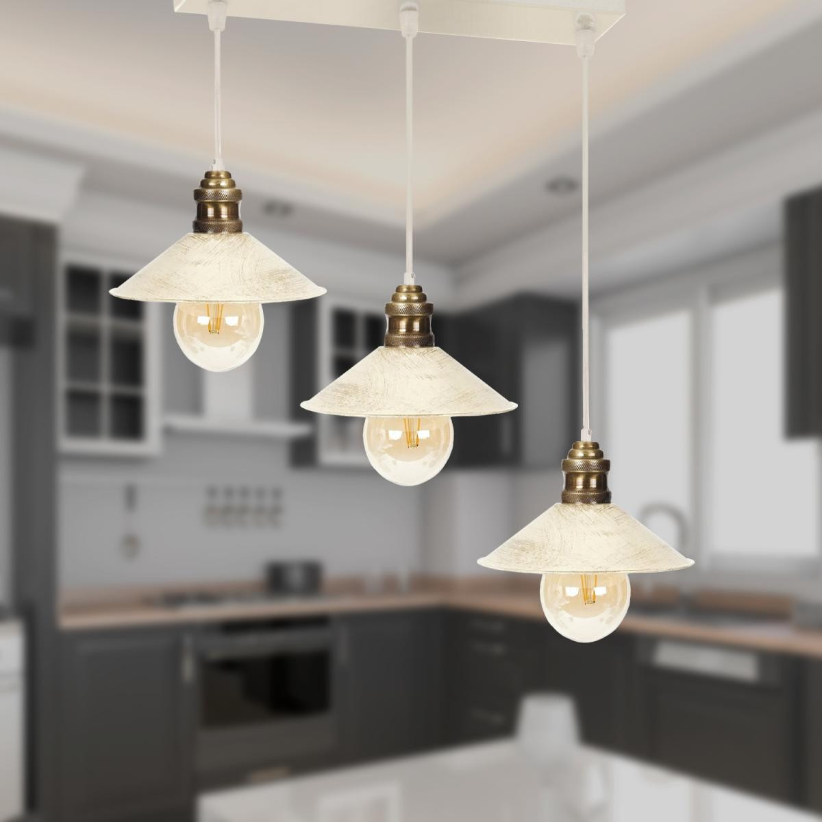Apliqa Gönen 3lü Beyaz Patinalı Modern Retro Sarkıt Salon Avize