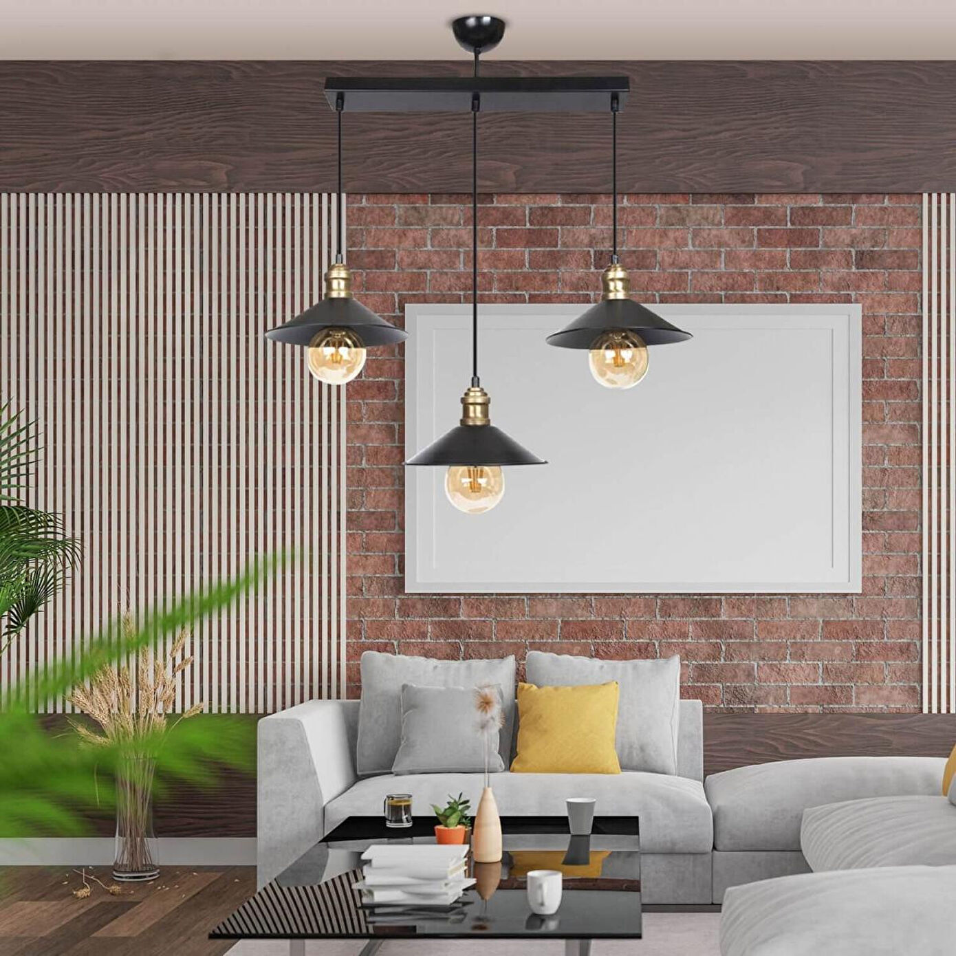 Apliqa Gönen 3lü Siyah Sıralı Modern Retro Sarkıt Mutfak Retro Salon Avize