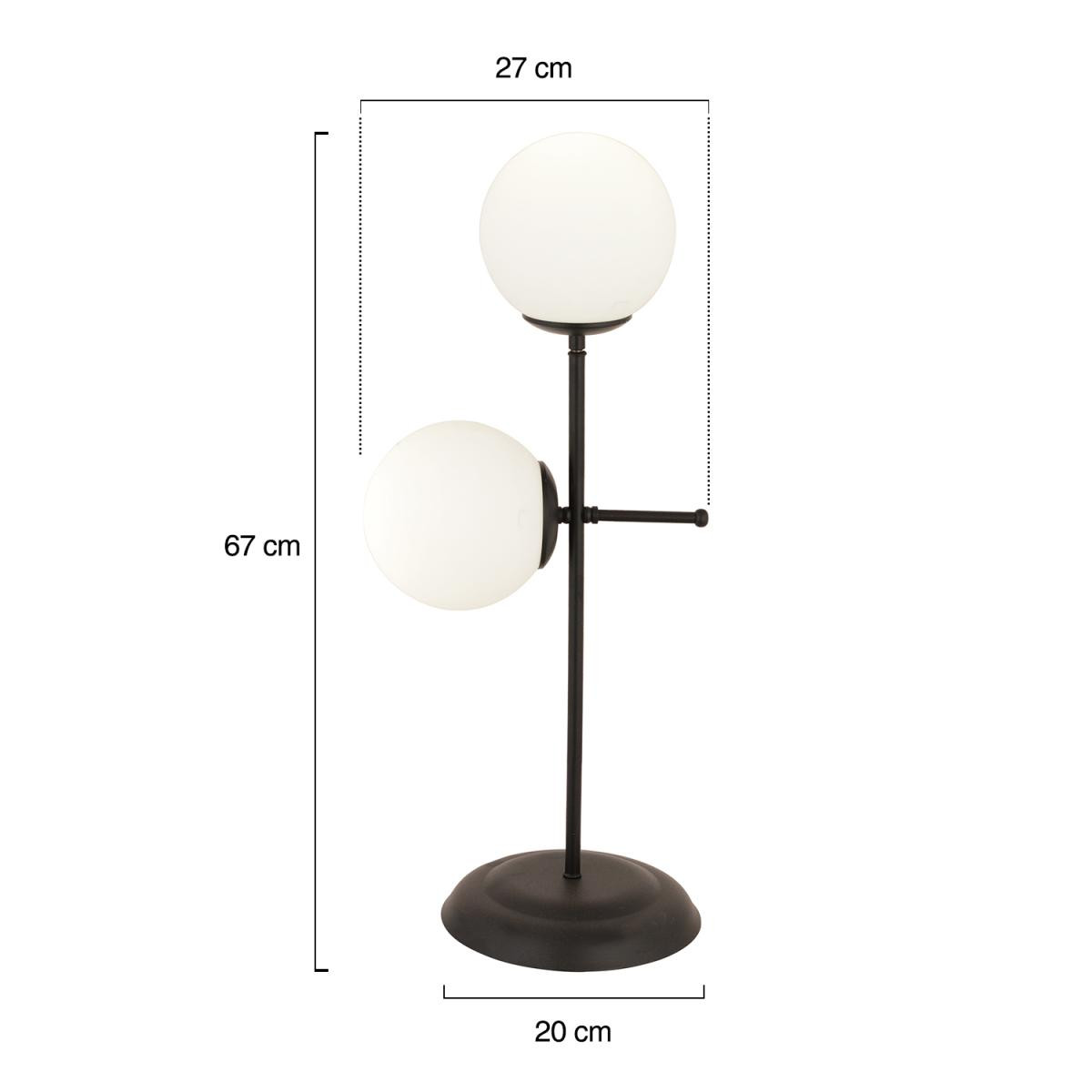 Siyah rengi ve modern tasarımıyla yaşam alanlarınıza zarif bir dokunuş katacak bu şık masa lambası, dekoratif görselliğiyle dikkat çeker. İki adet cam başlığı sayesinde ışığı homojen şekilde yayarak ortamda sıcak ve huzurlu bir atmosfer oluşturur. Metal gövdesi dayanıklılığı artırırken, zamansız tasarımıyla hem modern hem de klasik dekorasyonlara uyum sağlar. Ürün Özellikleri; Ürün Eni: 27 cm; Ürün Boyu: 67 cm; Renk: Siyah; Materyal: Metal; Başlıklar: Cam; Boy Ölçüsü: Sabit; Duy Tipi: E-27; Ampuller: Dahil değildir; Garanti: 2 yıl