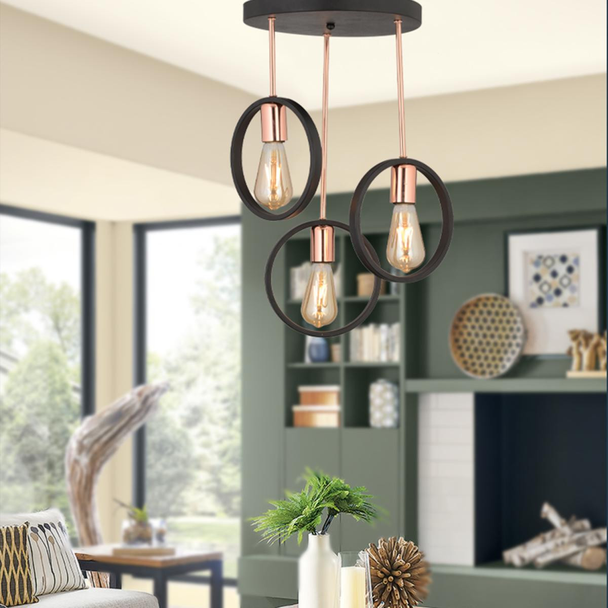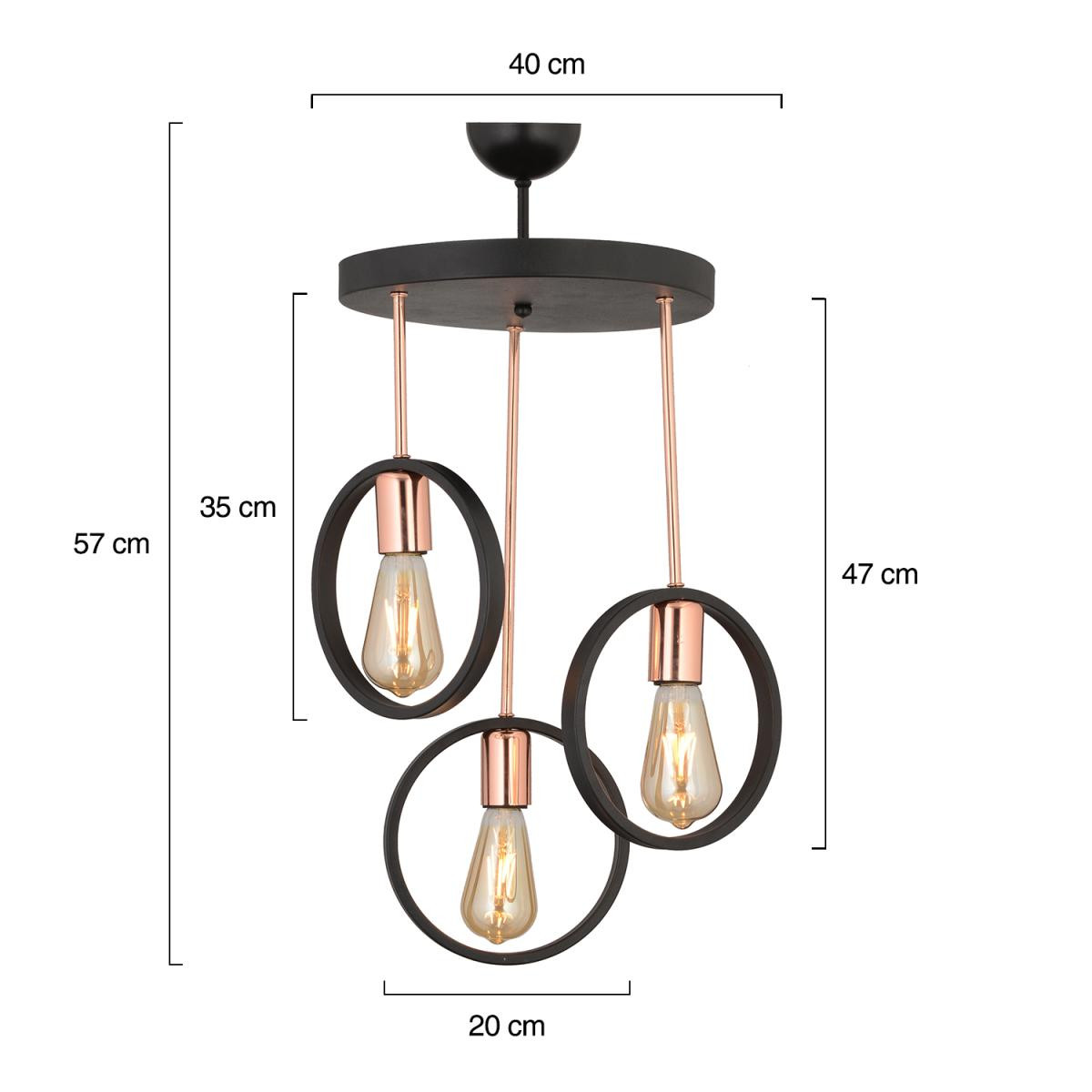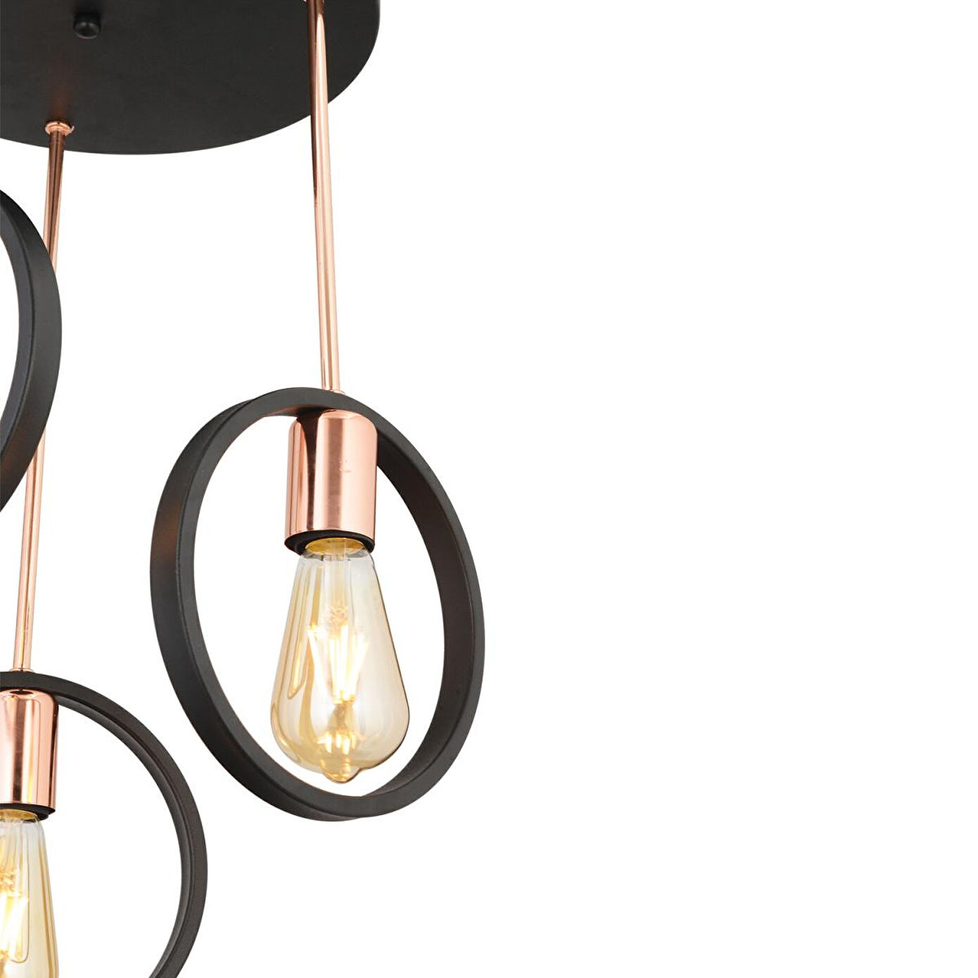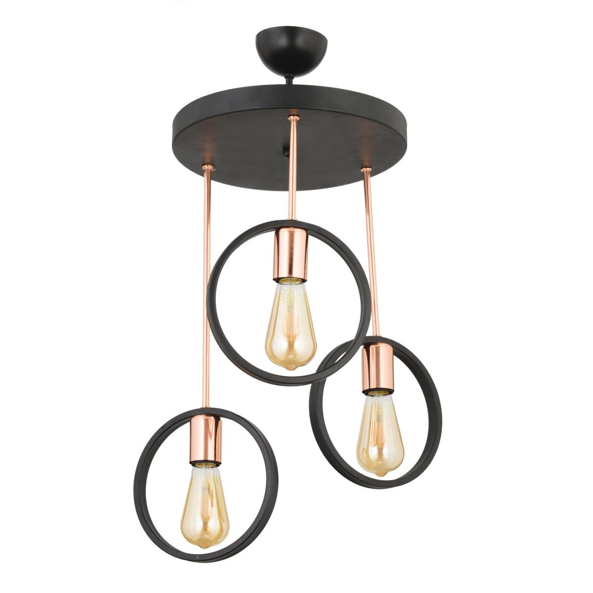 Apliqa Halka 3lü Yuvarlak Bakır Siyah Modern Koridor Mutfak Salon Retro Avize