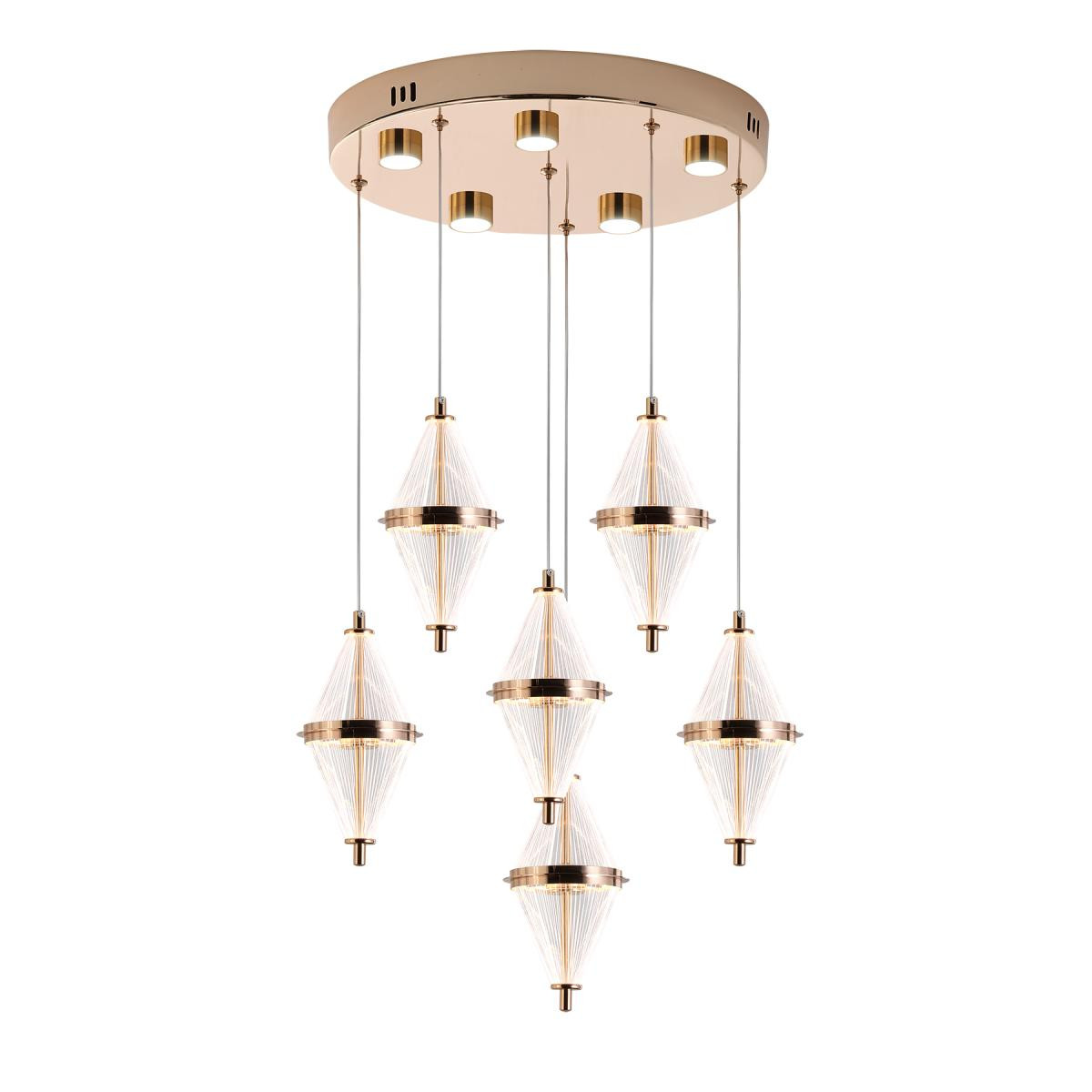 Apliqa Harold 6'lı 40 Watt Yuvarlak Gold Ledli Modern Salon Avize