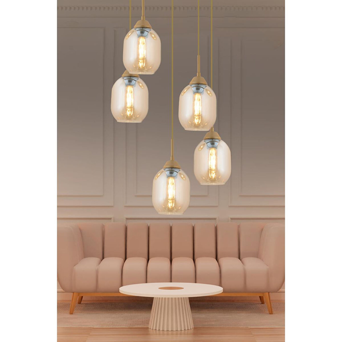 Modern ve klasik çizgileri bir arada sunan tasarımıyla salon, yemek odası ya da antre gibi farklı yaşam alanlarında mükemmel bir uyum sağlar. Bal camlar, ışığı yumuşatarak sıcak ve davetkar bir atmosfer oluşturur. Boyunun ayarlanabilir olması sayesinde her tavan yüksekliğine uyum gösterir. Özellikler Ölçüler: En 45 cm Boy 90 cm; Renk: Eskitme gövde, bal rengi cam; Materyal: Dayanıklı metal gövde ve kaliteli cam; Duy Tipi: E-27; Ampul: 5 adet duy girişi, ampuller dahil değildir; Montaj: Demonte gönderim ile kolay kurulum; Garanti: 2 yıl